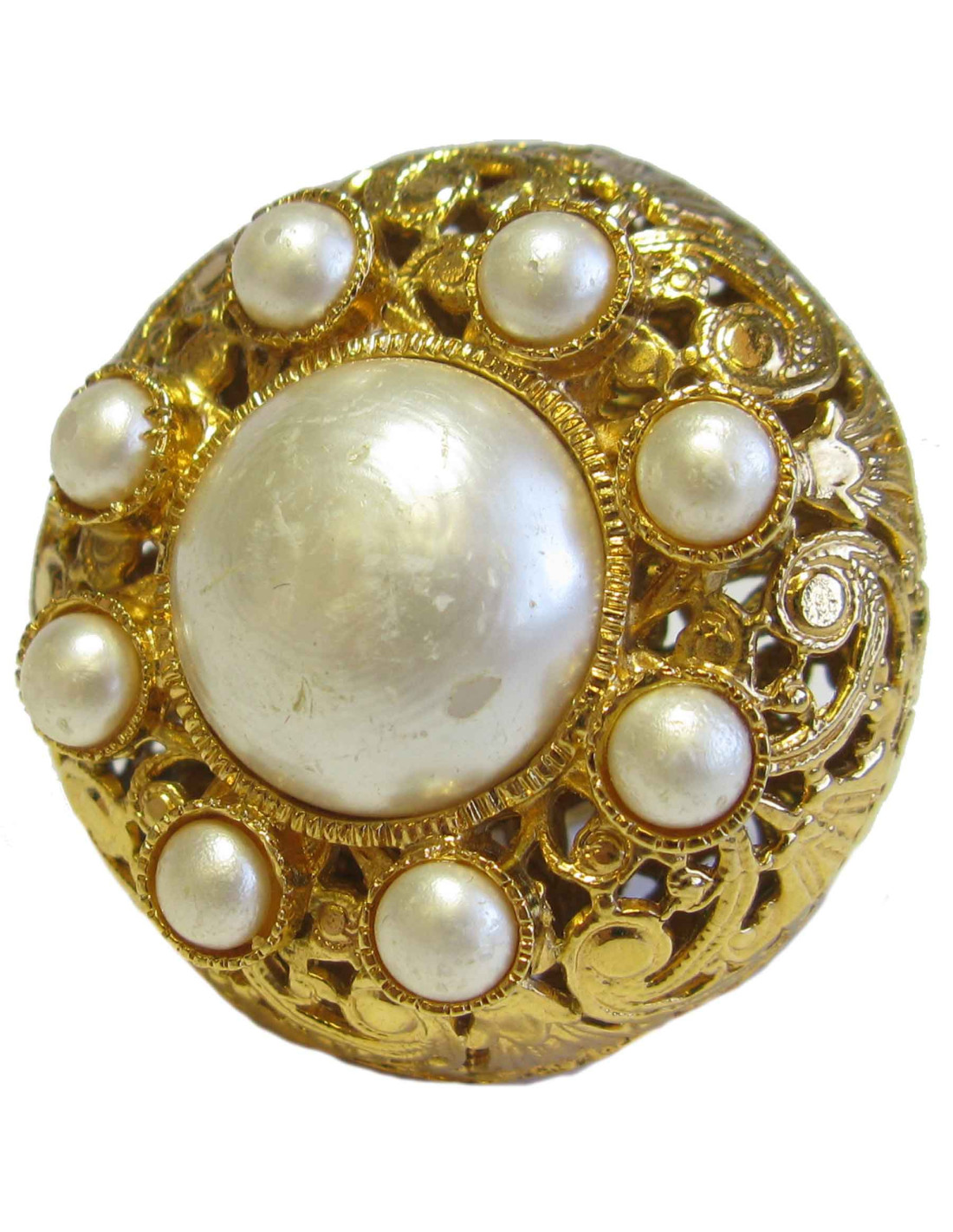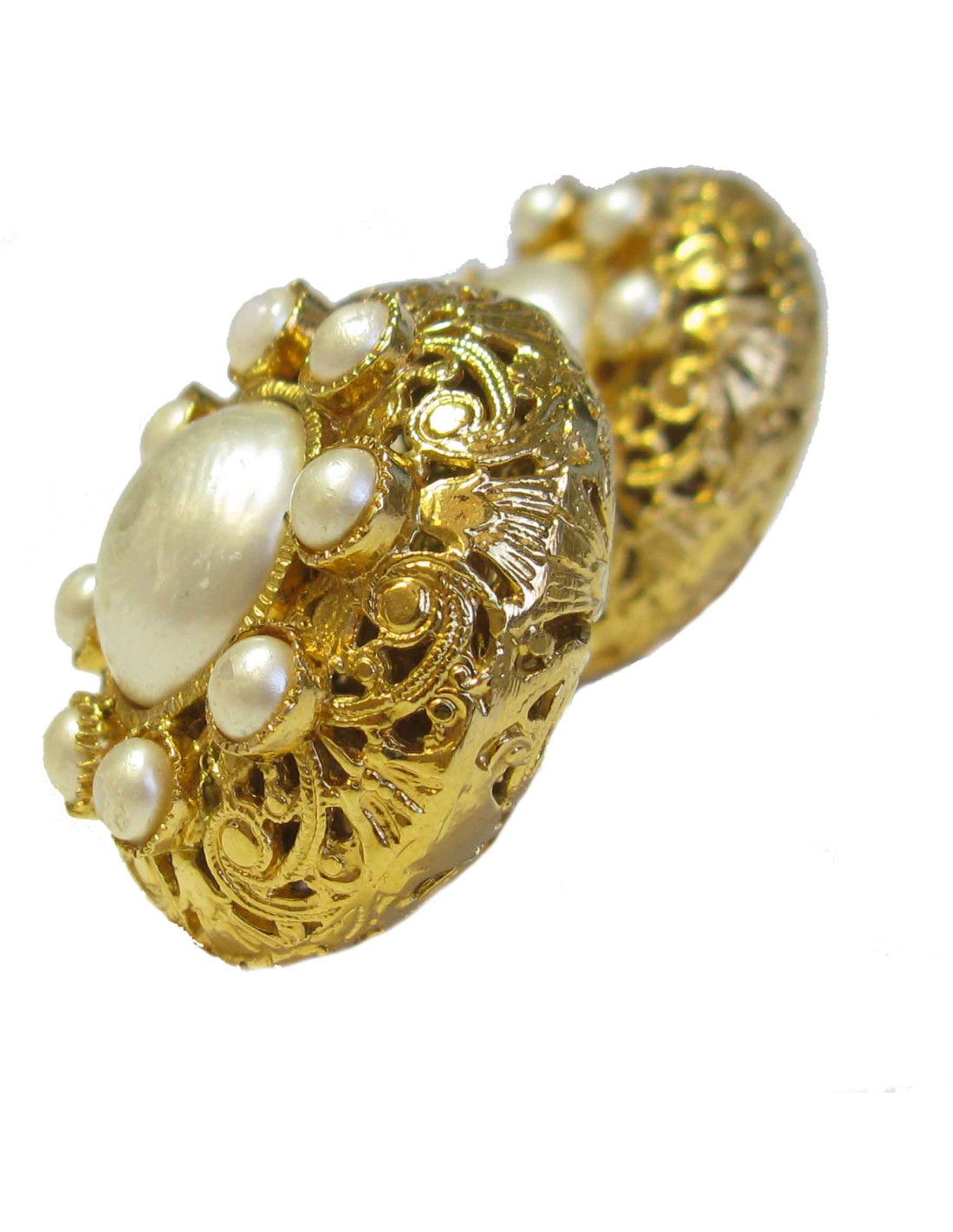Boucles d'oreilles clips Chanel vintage en métal doré filigrané, des perles nacrées rehaussent ces magnifiques bijoux.