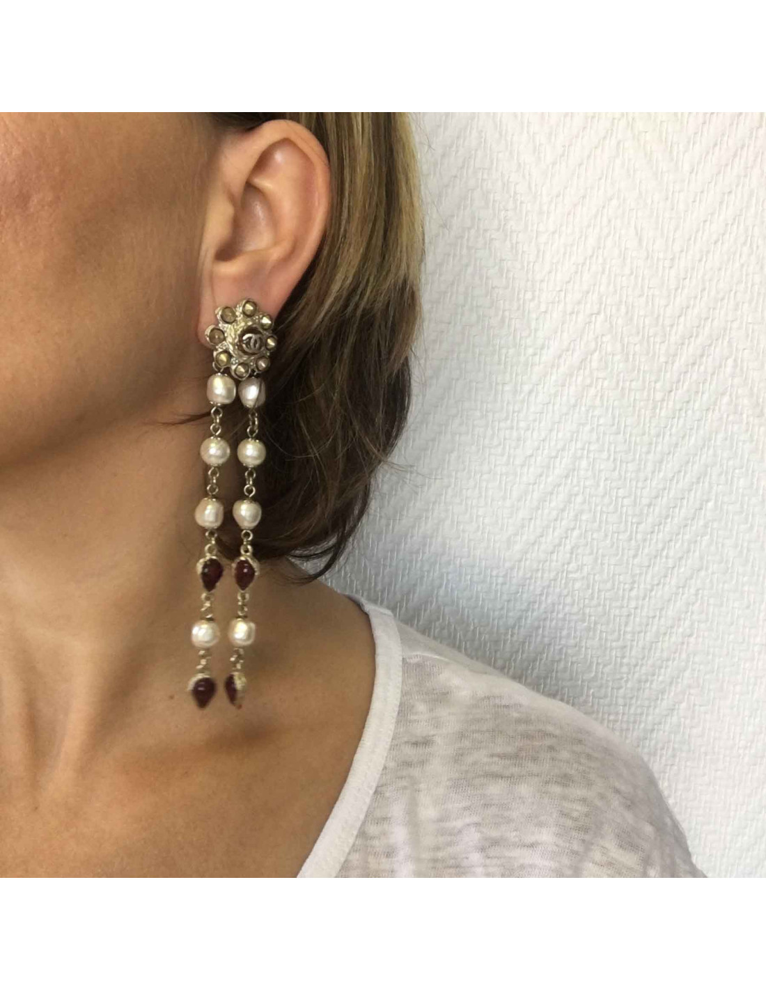 Last items in stock EARRINGS CHANEL Vintage Clip-on Earrings in Gilded Metal set with Pearls CHANEL 20187 3,250.00 € Couture! Imposing Chanel clip-on earrings in gilded metal, pearl in the center pearly. Small ivory and pearly pearls all around the loop. Vintage jewel in very good condition. Dimensions: diameter: 5.5 cm Delivered in a Valois Vintage Paris pouch Add to cart