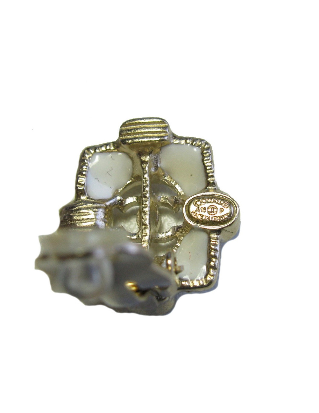 CHANEL stud earrings in gilded metal, ivory resin and pearl beads