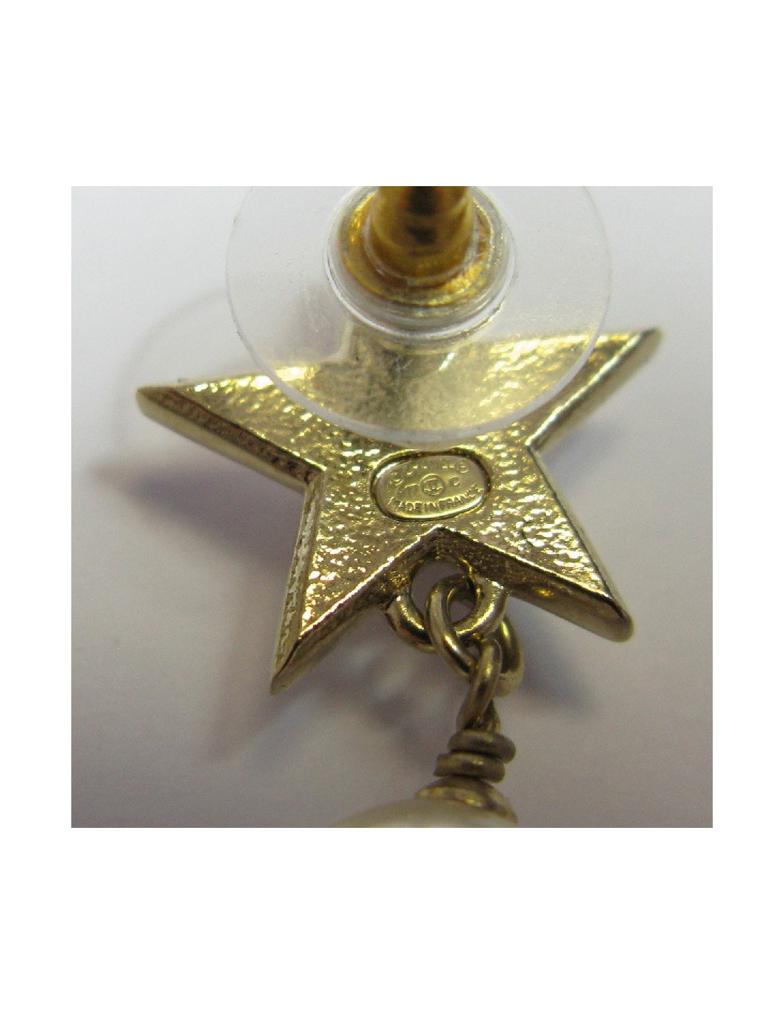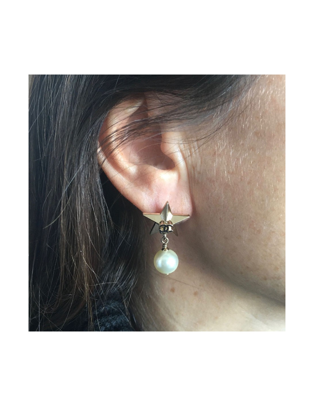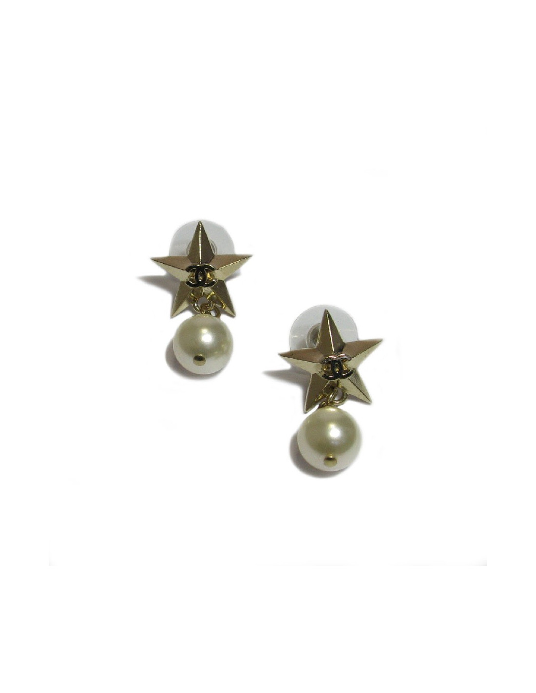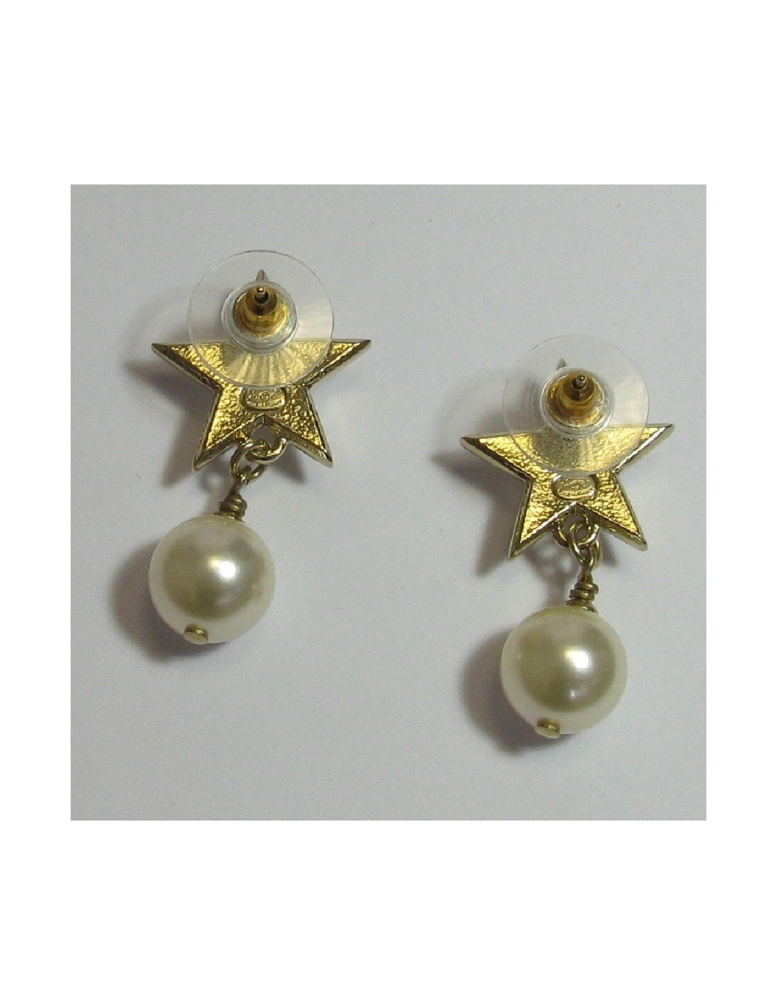 CHANEL stud earrings star in gilded metal and pearl