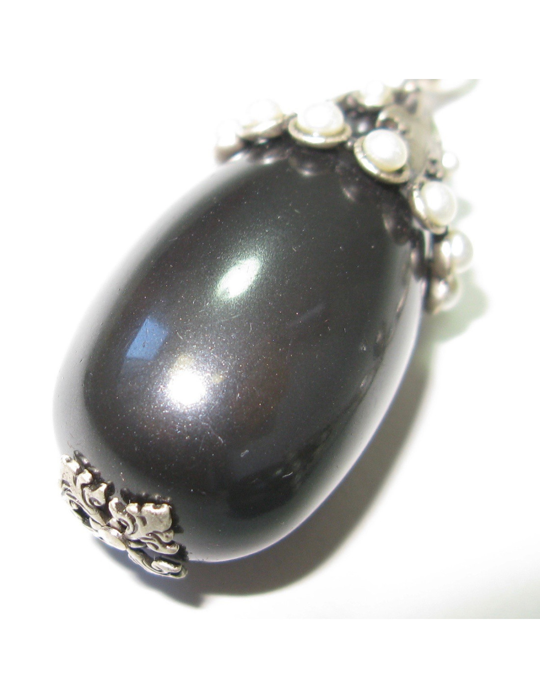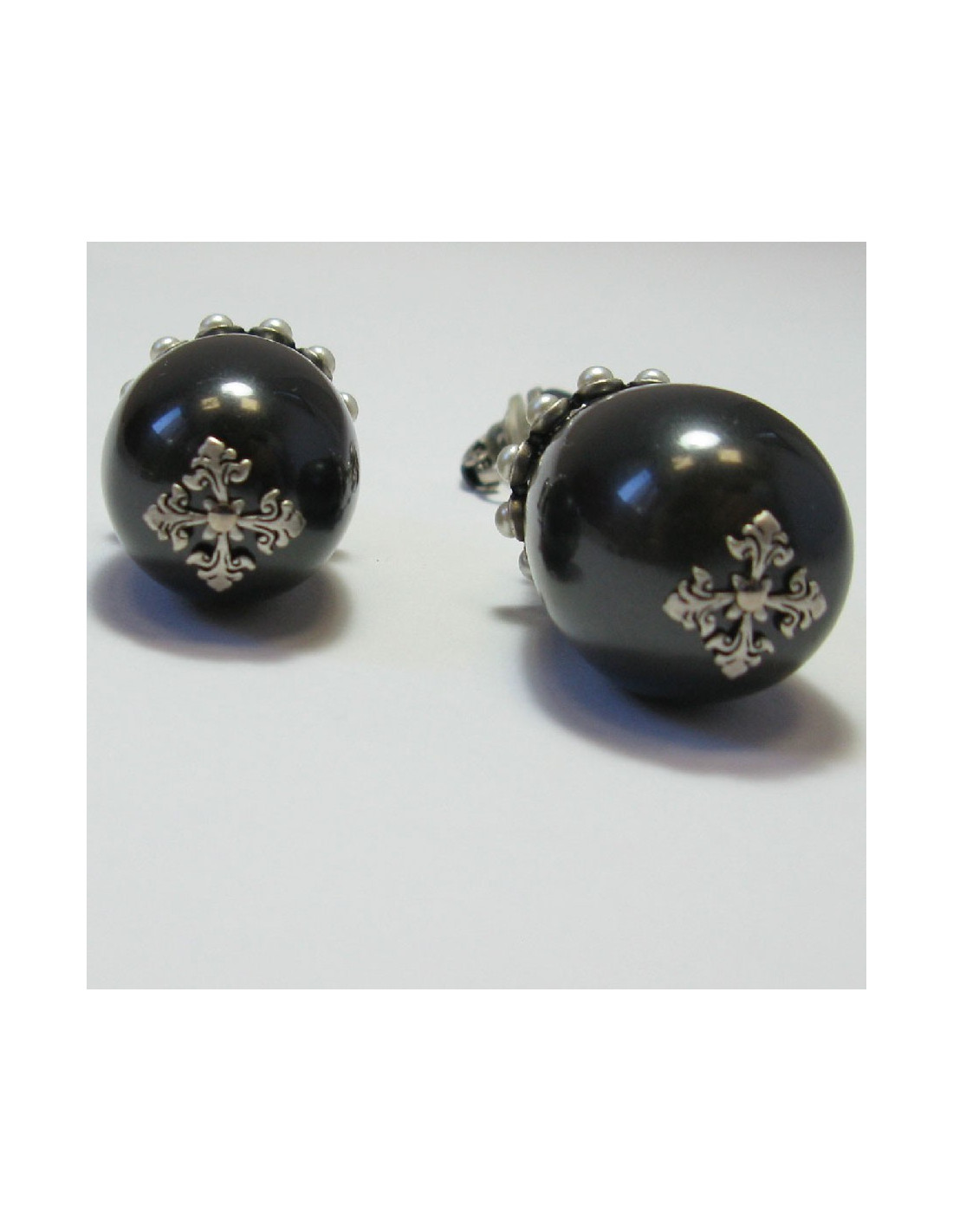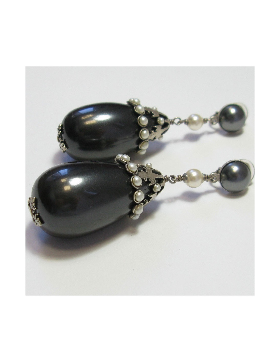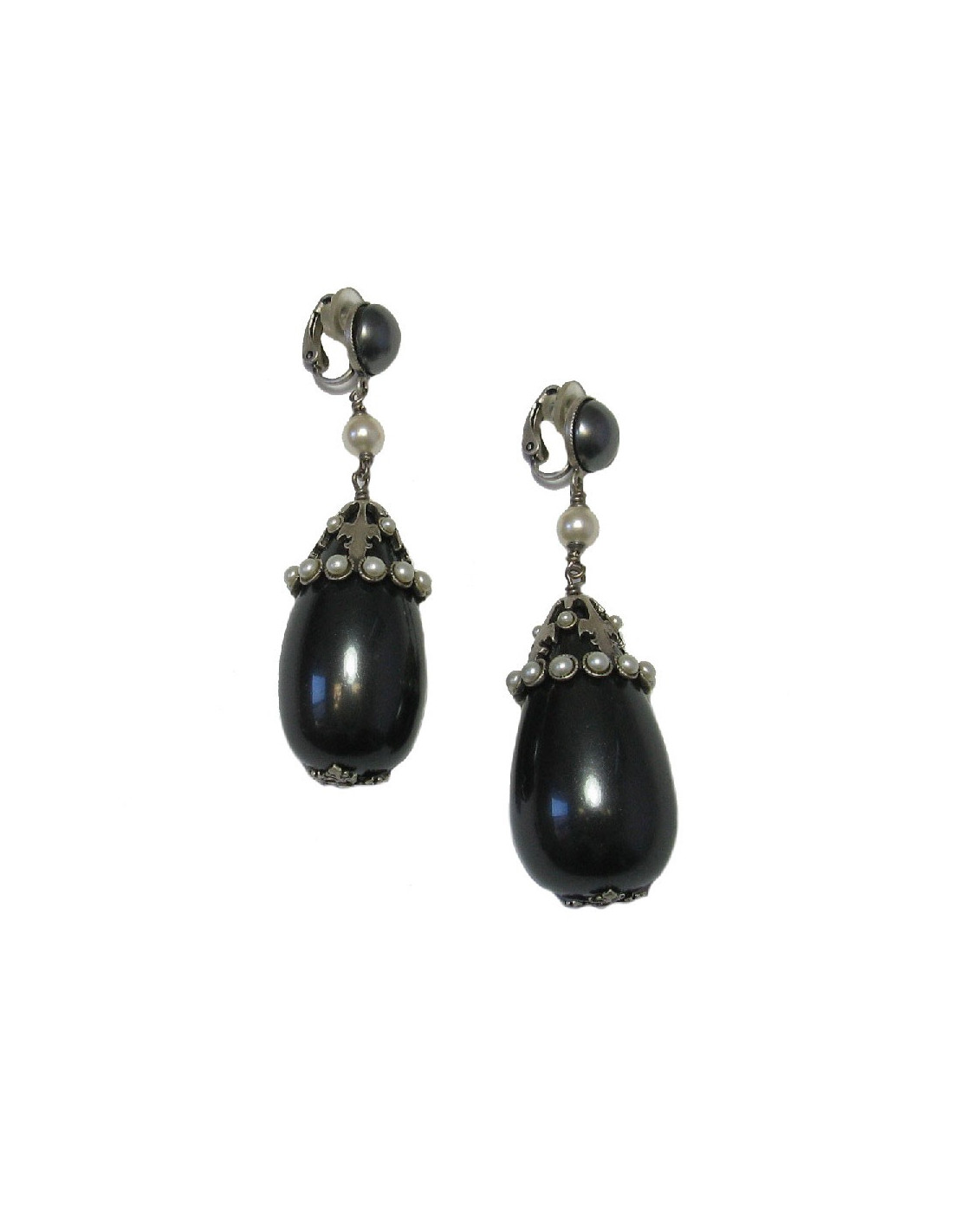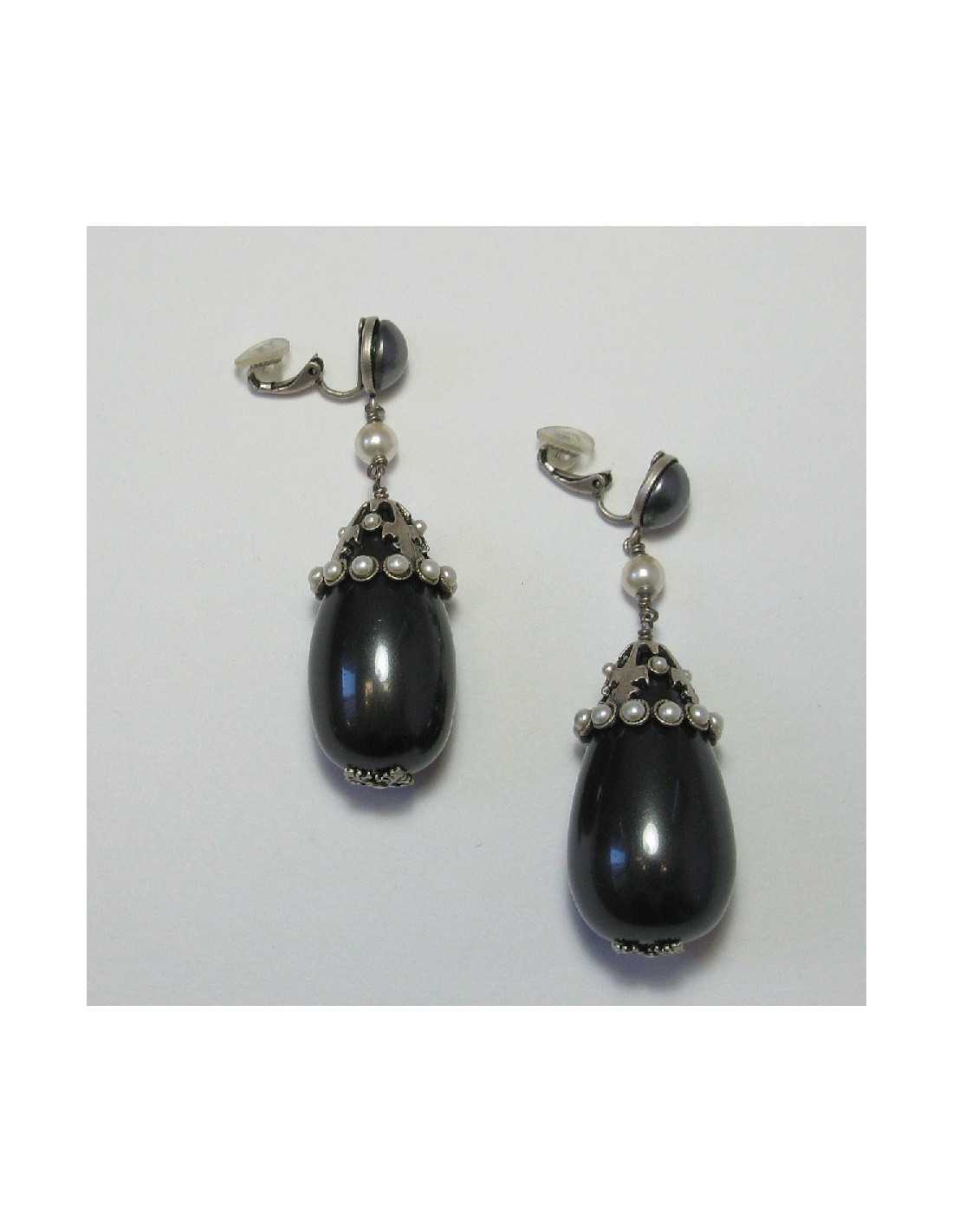 CHANEL gray pearl clip on earrings with silver metal set with white pearls