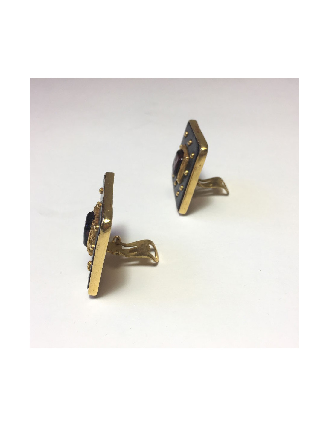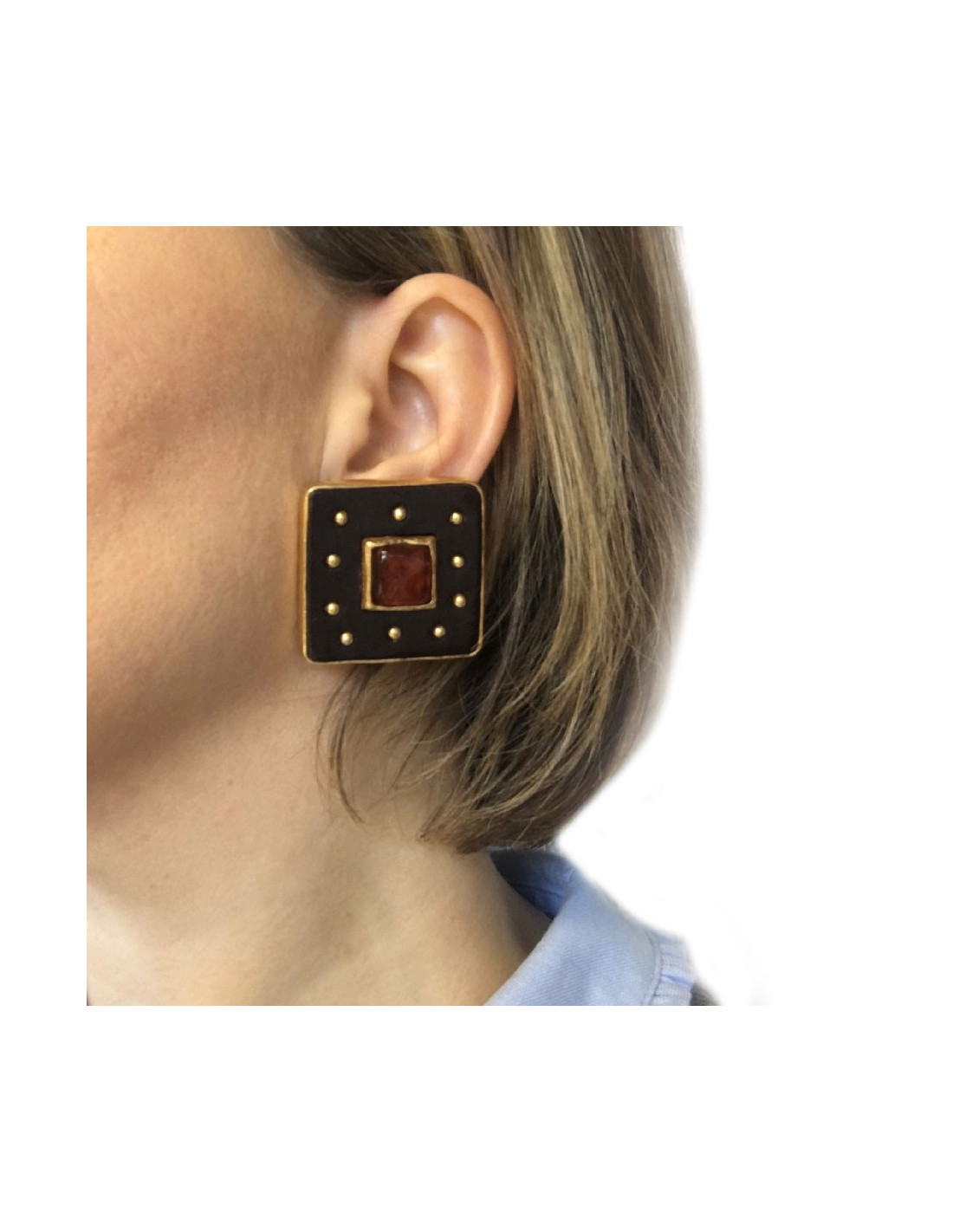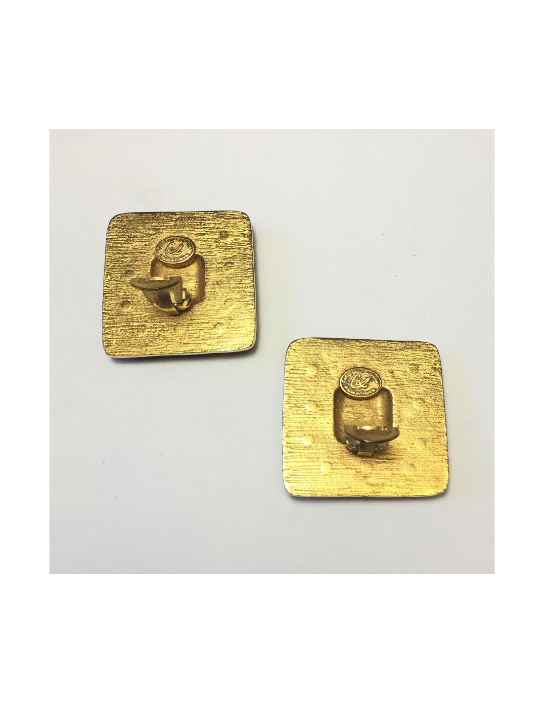 Last items in stock EARRINGS CHANEL vintage square shaped metal and pearl clip-on earrings CHANEL 36075 690.00 € CHANEL vintage square shaped metal and pearl clip-on earrings Condition : very goodMade in FranceMaterials: metal, pearly beadsColors: gold, mother-of-pearlMeasurements : 2.6 x 2.6 cmstamps : yesYear : 1984Details : 4 intertwined CCs with a mother of pearl bead in the center. Add to cart