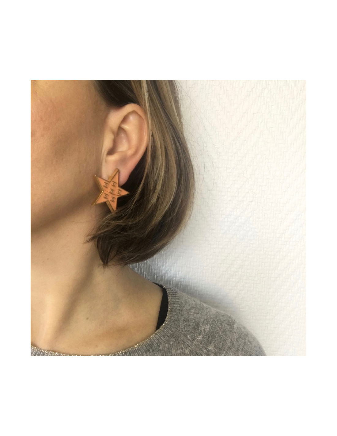 CHANEL star clip-on earrings in gilded metal and coral enamel