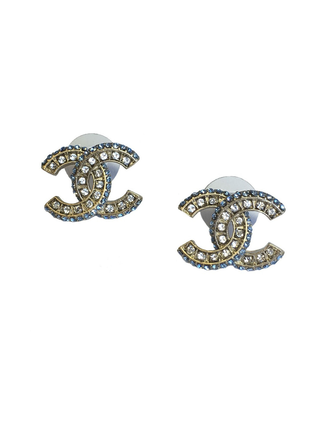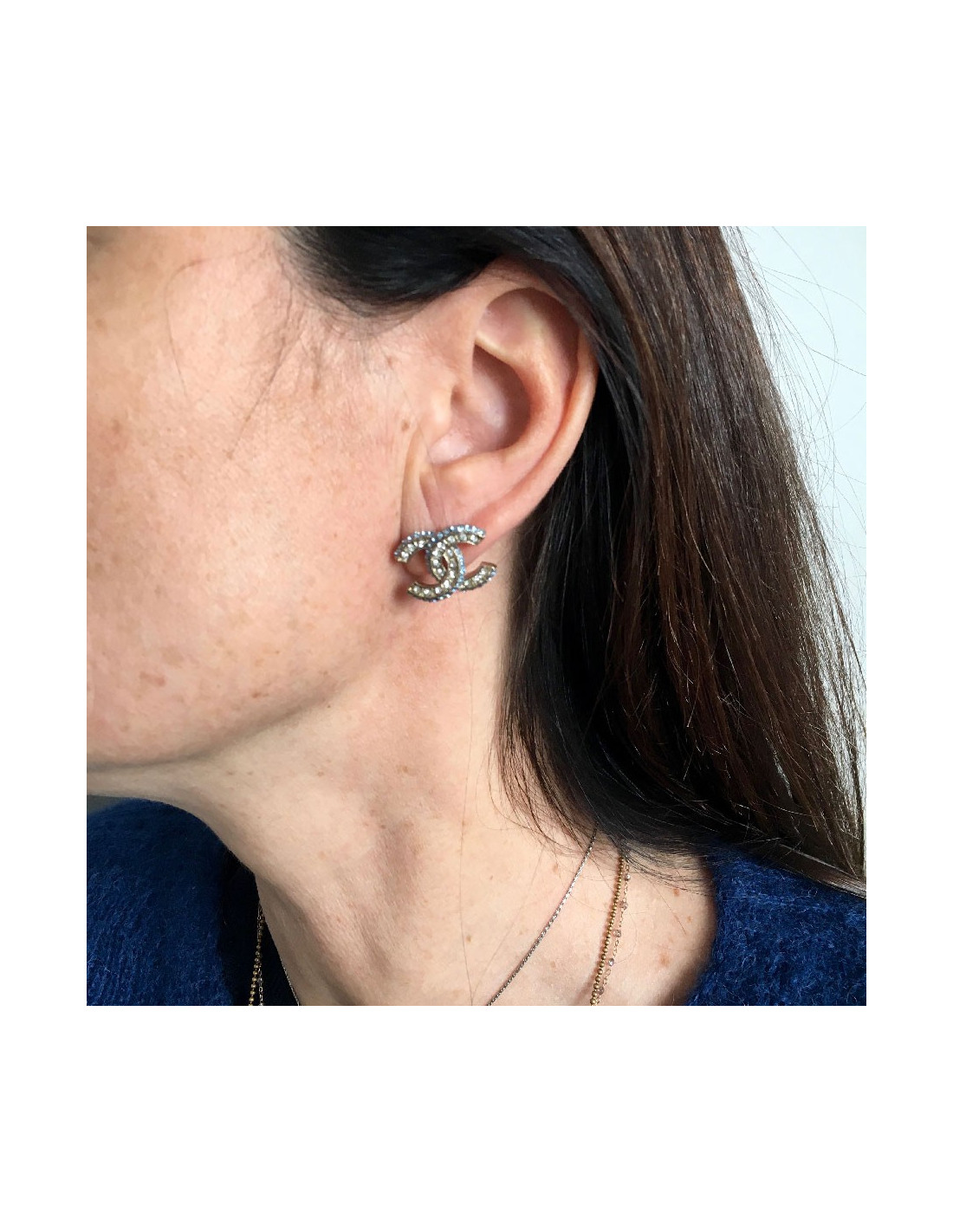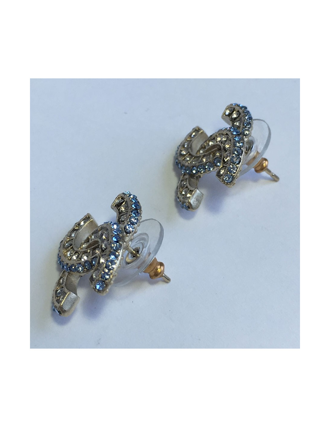 CHANEL CC stud earrings in matte pale gold metal and Rhinestones