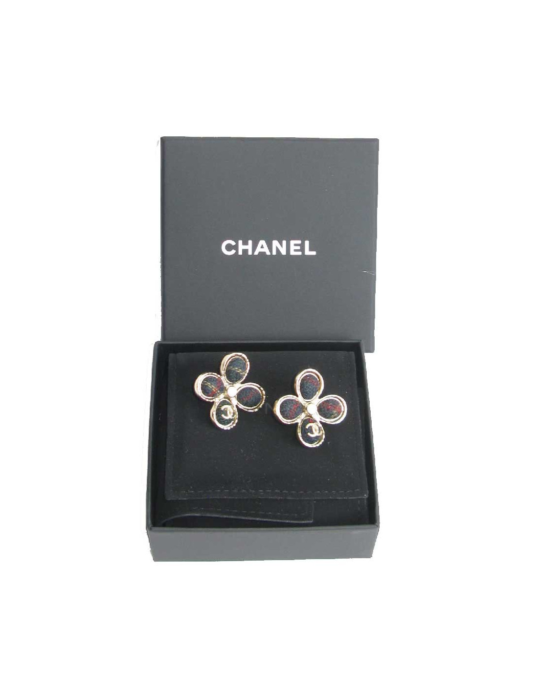 CHANEL clover stud earrings 'Paris Edinburgh' in gilt metal and multicolored tweed