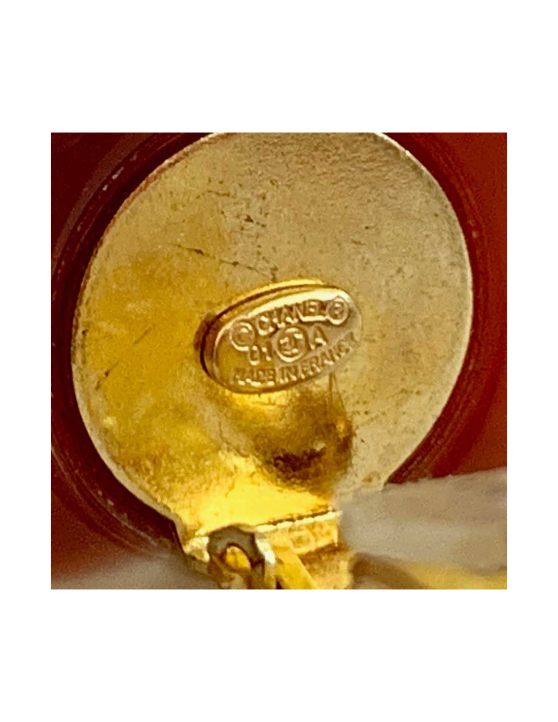 Last items in stock EARRINGS CHANEL vintage gold and pearl clip-on earrings CHANEL 29035 1,890.00 € CHANEL gilded circular clip-on earrings Condition: goodMaterials: metal, pearlColors: gold, mother-of-pearlMeasurements: 3 cm (diameter) AUTHENTICITY CERTIFIED by our expert team since 1998 Add to cart