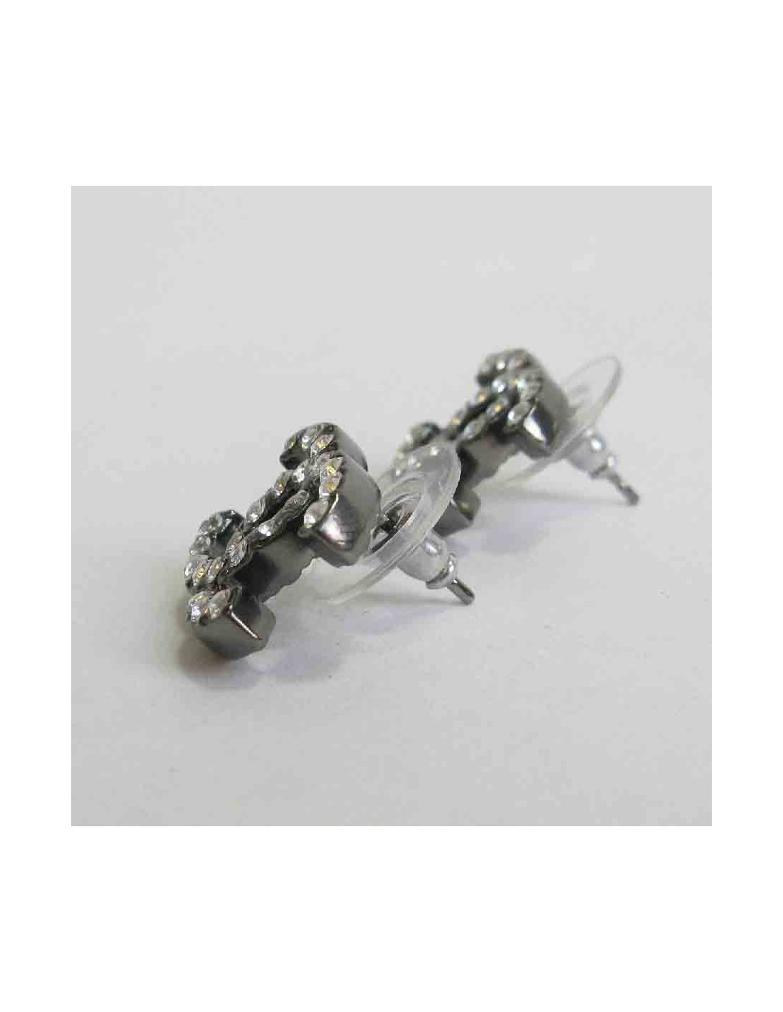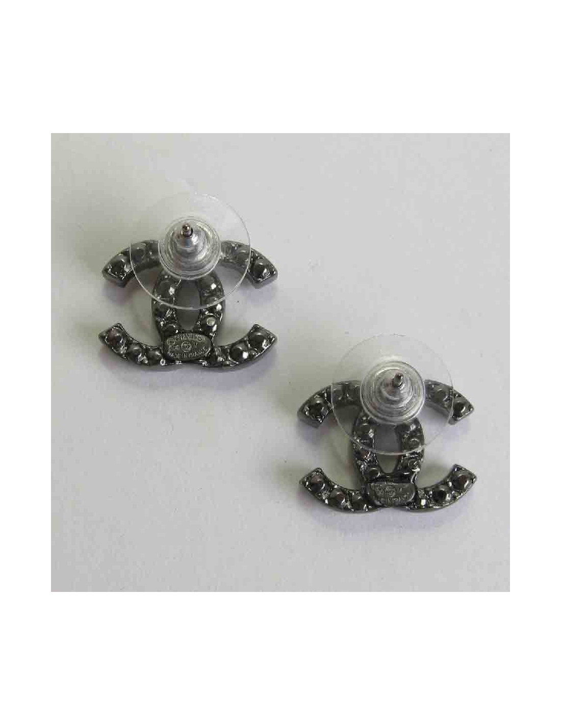 CHANEL "CC" stud earrings in ruthénium and rhinestones