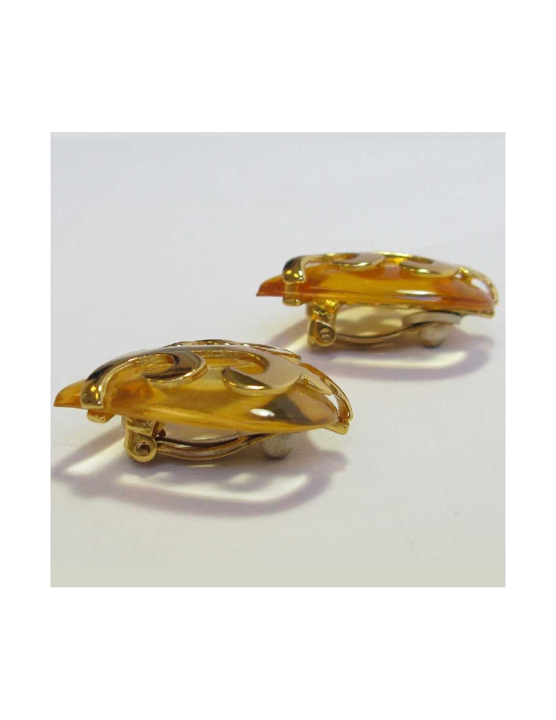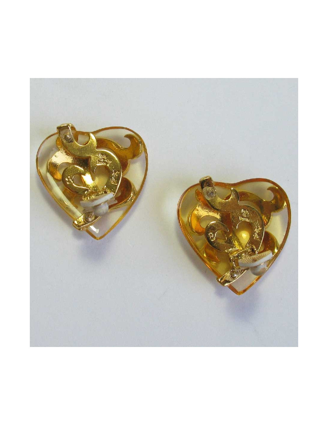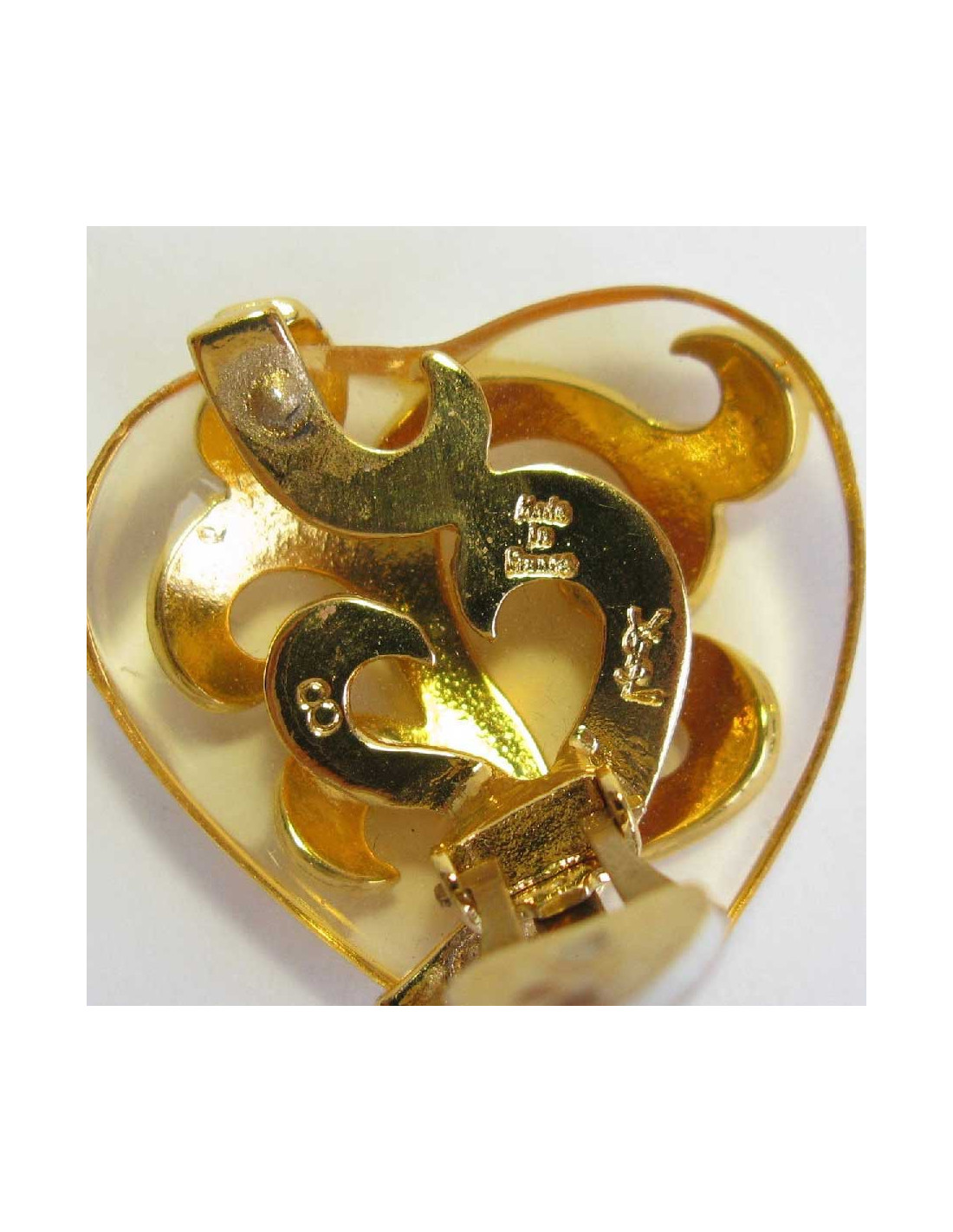 YSL YVES SAINT LAURENT heart clip-on earrings in gilt metal and transparent plexi