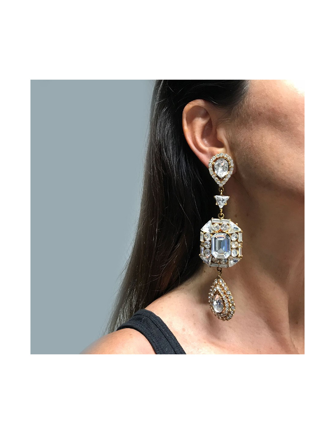 Sold EARRINGS Yves SAINT LAURENT YSL pendant pierced earrings SAINT LAURENT 29341 930.00 € Yves SAINT LAURENT YSL vintage pendant pierced earrings Condition : very goodMade in FranceColors : gold, transparentMaterials : metal, rhinestonesMeasurements : 12 x 9,5 cmDetails : two rhinestones are missing from the left earring (see third photo) View