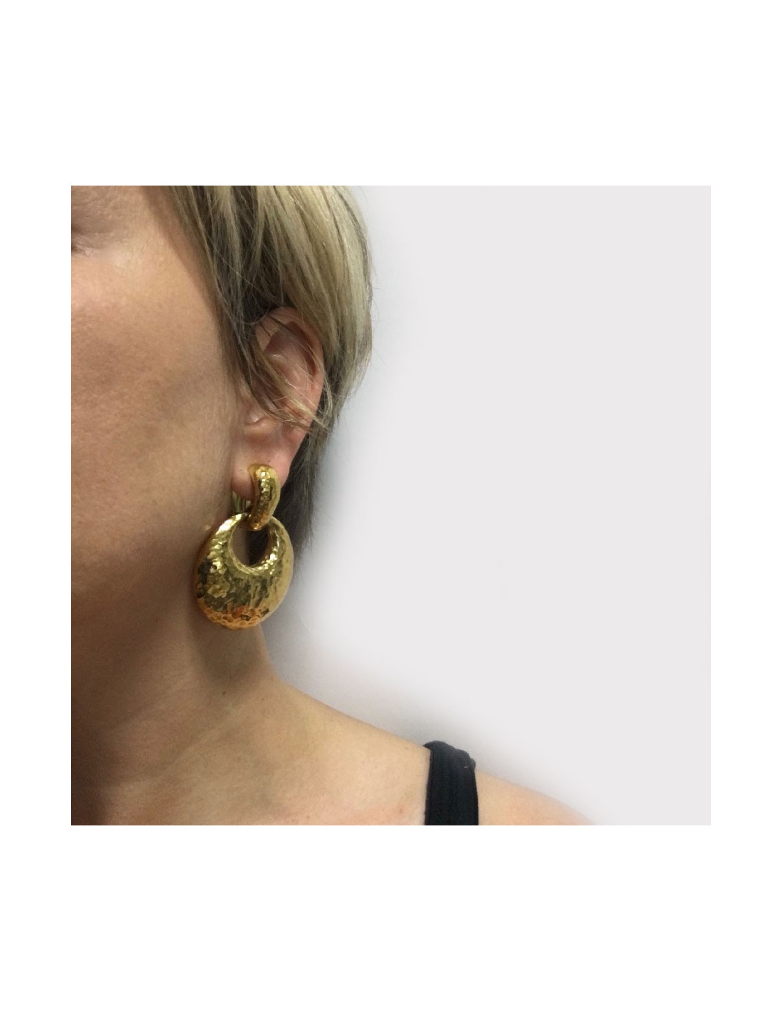 YSL YVES SAINT LAURENT vintage clip-on earrings in hammered gilded metal