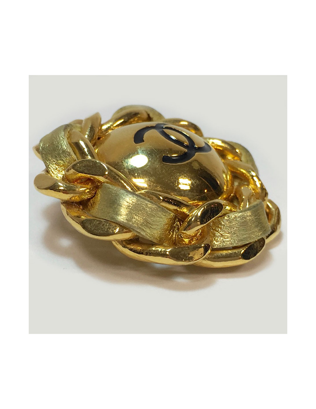 CHANEL vintage clip-on earrings in gilt metal and golden leather