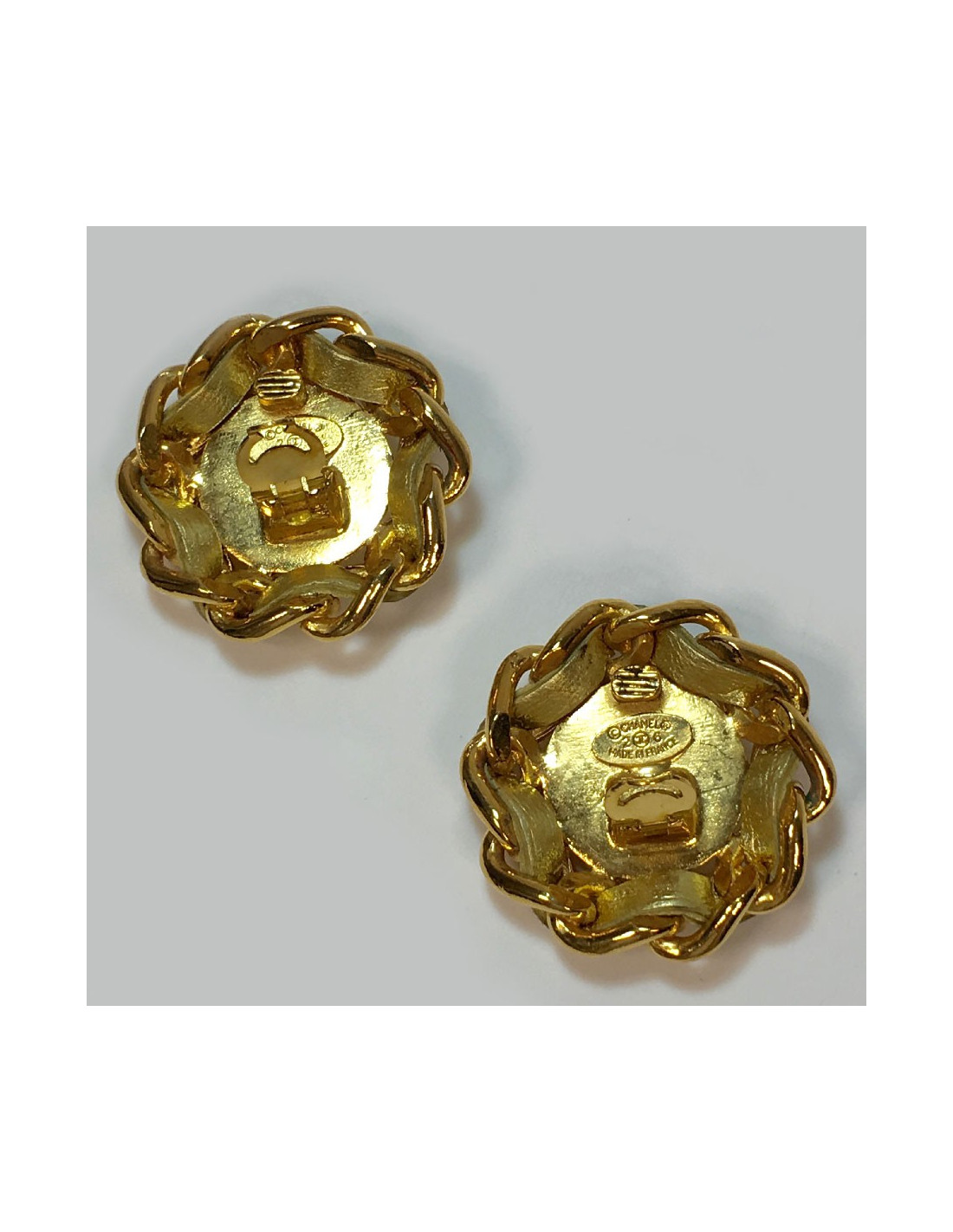 Chanel vintage clip-on earrings in gilt metal and golden leather
