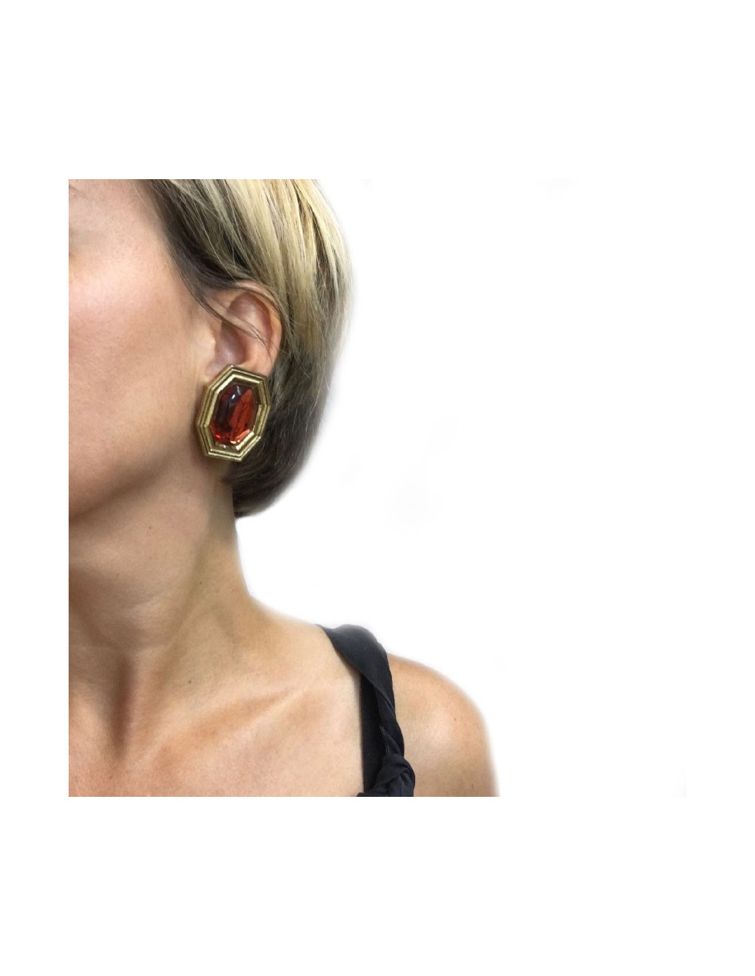 Vintage Yves Saint Laurent YSL clip-on earrings in gilt metal and orange resin.
