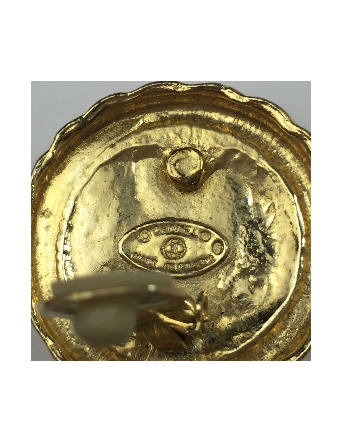 Last items in stock EARRINGS CHANEL vintage haute couture gilded clip-on earrings CHANEL 19051 3,590.00 € CHANEL vintage haute couture gilded clip-on earrings Condition : goodMade in FranceMaterials: gold plated metalColor: goldRare collector pieceMeasurements : 5 x 5 cmWeight : 47 grams for each earringS for sales on the back of each earringYear: 90' Delivered in a pouch and Valois Vintage Paris box Add to cart
