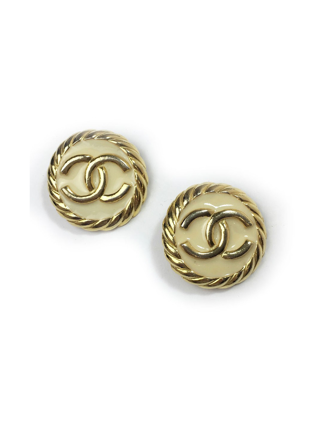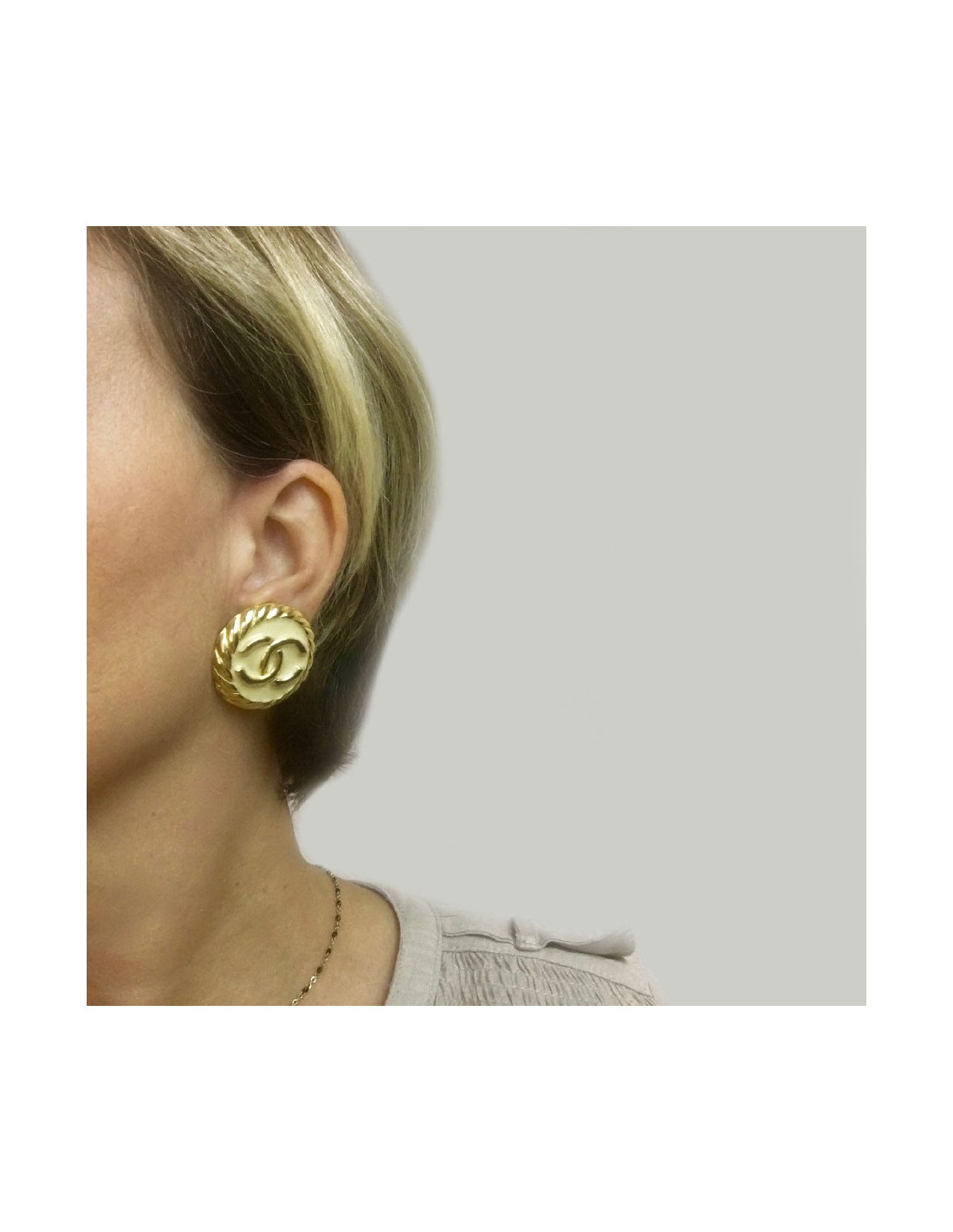 Last items in stock EARRINGS CHANEL Vintage gilded 1996 clip-on earrings CHANEL 34609 1,260.00 € CHANEL Vintage gilded 1996 clip-on earrings Condition: very goodMade in FranceMaterial : metalColor: goldMeasurements: diameter 3 cmHardware :24k gold plated metalStamp : yesYear : Spring1996Details : "CC” embossed, braided metal Add to cart