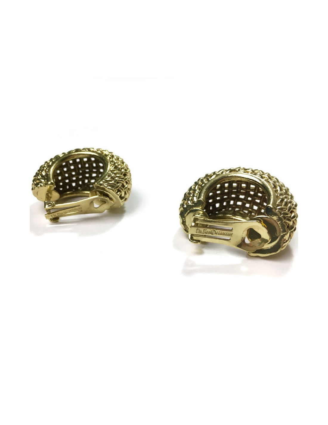 New Last items in stock EARRINGS Yves Saint Laurent vintage rectangle clips SAINT LAURENT 42734 550.00 € Yves Saint Laurent vintage rectangle clips These stunning vintage YSL clip-on earrings are crafted in gold-plated hammered metal. Forming a bold rectangular shape, each clip prominently features the iconic YSL logo. Made in France, they measure 3.5 x 4 cm and are stamped with the brand mark. In very good vintage condition, they show slight signs of wear... Add to cart