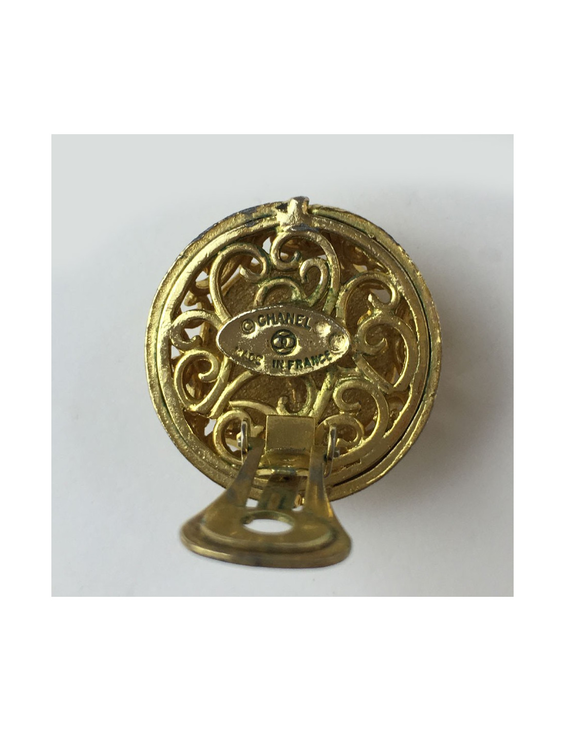 Last items in stock EARRINGS CHANEL vintage clip-on earrings in gilded metal and pearls CHANEL 20372 1,250.00 € Couture! vintage CHANEL clip-on earrings in gilded metal, pearls in the shape of pearly petals and black pearl in the center. Letter S engraved. It comes from press sales. Dimensions: diameter of clip-on earring : 4,5 cm Will be delivered in a Valois Vintage Paris Dustbag Add to cart