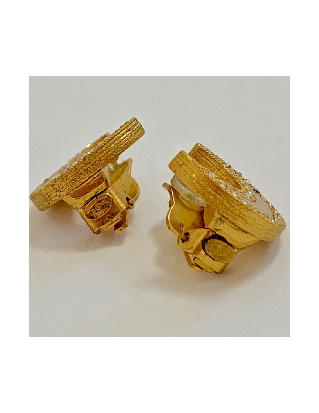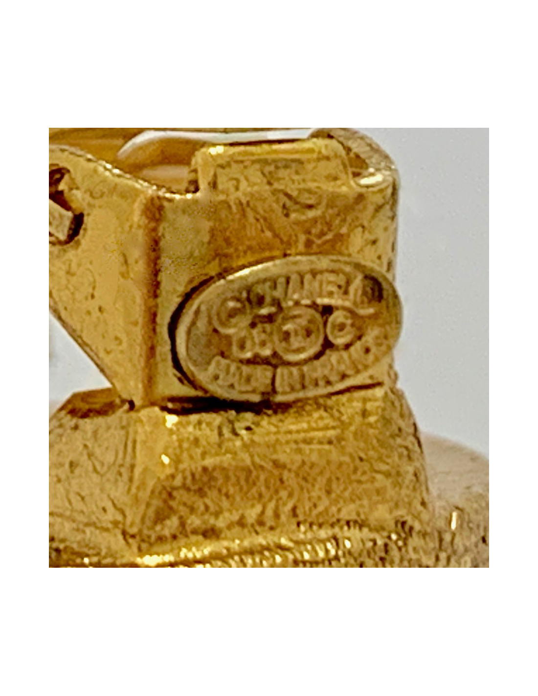Last items in stock EARRINGS CHANEL Vintage round gilded clip-on earrings CHANEL 31561 1,290.00 € CHANEL Vintage round gilded clip-on earrings Condition: very goodMaterial : metal Color : goldStamp : noYear : 1988-1989Measurements : 3.5 x 3.5 cm Add to cart