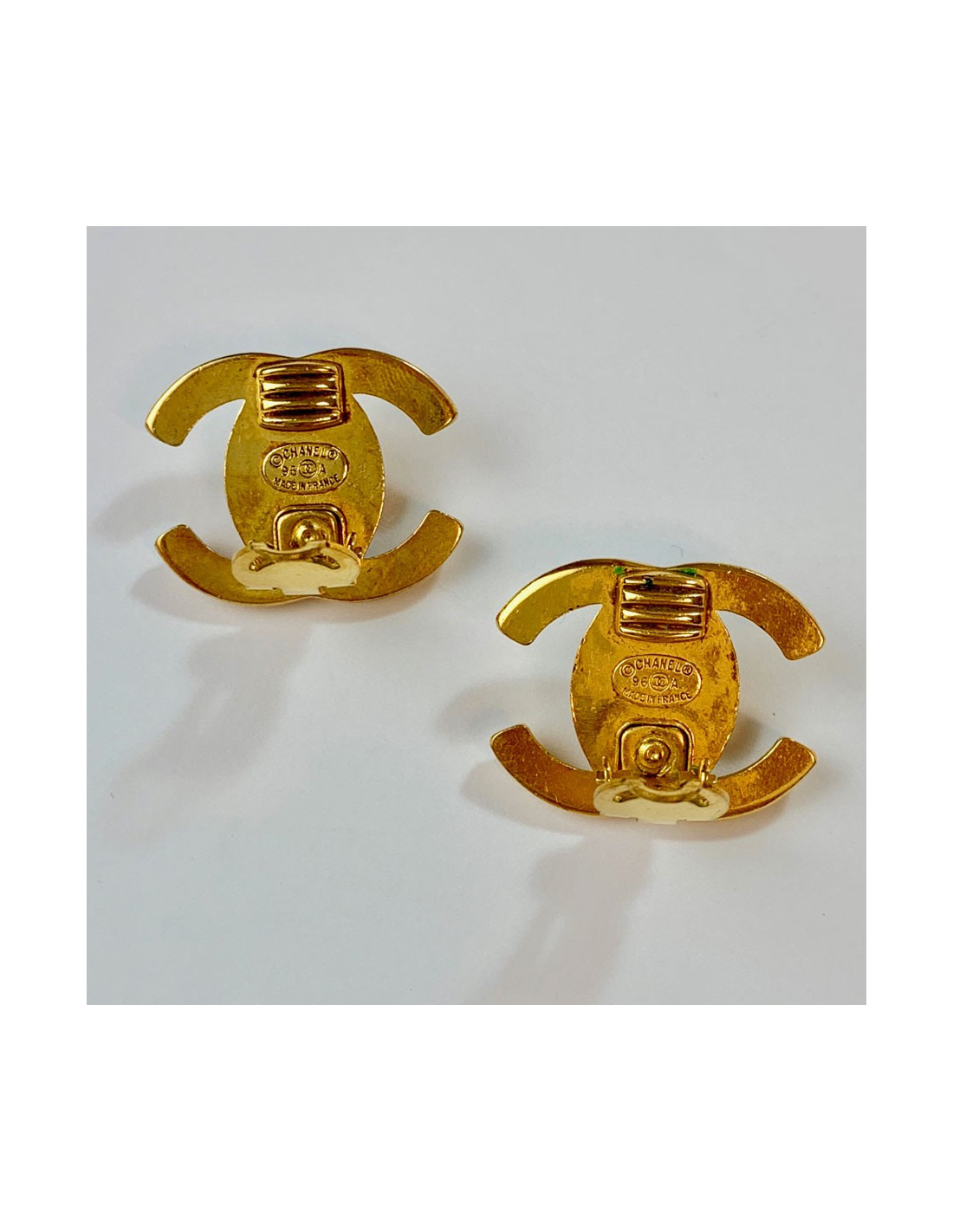 Last items in stock EARRINGS CHANEL vintage 1980 gilded circular clip-on earrings CHANEL 32454 990.00 € CHANEL vintage 1980 gilded circular clip-on earrings Condition: very goodMade in FranceModel : broochColor : light goldMaterial : gold plated metalMeasurements : 2,8 x 3,1 cmStamp : yesYear: 1980 Add to cart