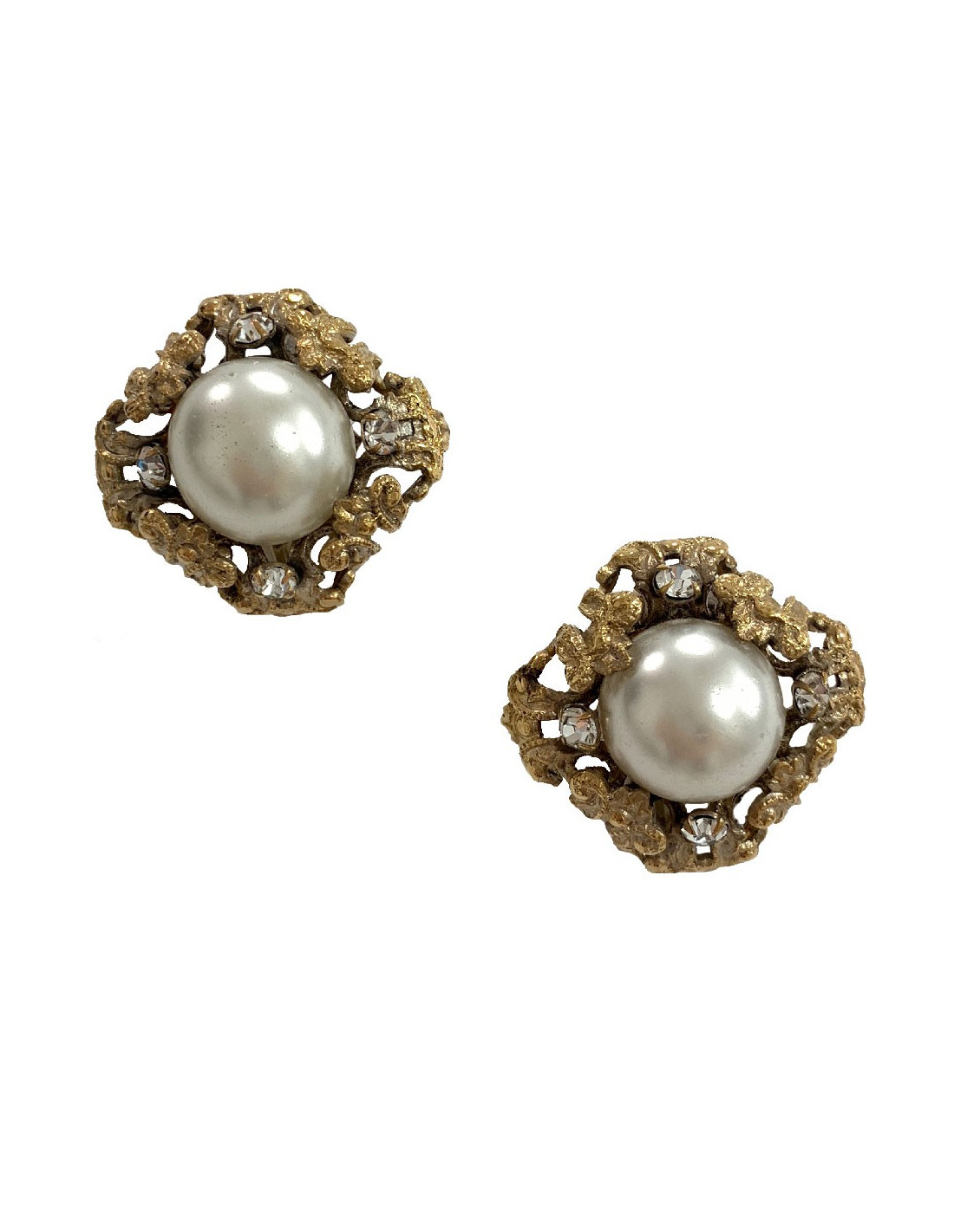 Last items in stock EARRINGS CHANEL vintage square shaped metal and pearl clip-on earrings CHANEL 36075 690.00 € CHANEL vintage square shaped metal and pearl clip-on earrings Condition : very goodMade in FranceMaterials: metal, pearly beadsColors: gold, mother-of-pearlMeasurements : 2.6 x 2.6 cmstamps : yesYear : 1984Details : 4 intertwined CCs with a mother of pearl bead in the center. Add to cart