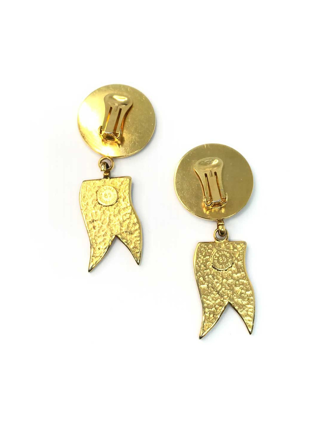 Last items in stock EARRINGS CHANEL vintage brown resin clip-on earrings CHANEL 25448 490.00 € CHANEL vintage couture brown clip-on earrings Condition : very goodMade in FranceMaterials : resin, metalColors : brownModel : clip-on earringsMeasurements : diameter 2 cmHardware : gold plated metalStamp : yesYear : 1986Details : iridescent brown resin cabochon Add to cart