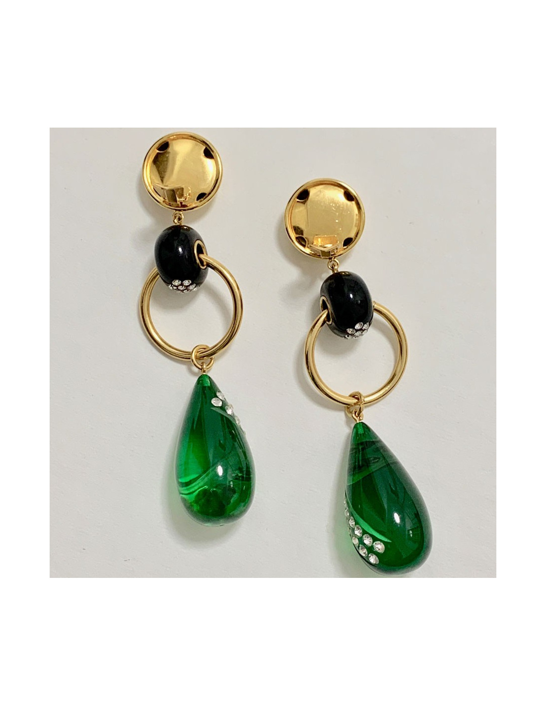 Last items in stock EARRINGS CHANEL Vintage Flower Clips in Gilt Metal CHANEL 28375 3,250.00 € Collector CHANEL flower clips Condition: goodMade in FranceMaterial: gold-plated metal, mother-of-pearlColor: gold, mother-of-pearlDimensions: diameter 6 cmHardware: gold-plated metalStamp: yesYear: 80sDetails : Clip earrings from the 80s, each representing an imposing daisy, with fine-gold petals and a pearly daisy in the heart. A rare collector's item.... Add to cart