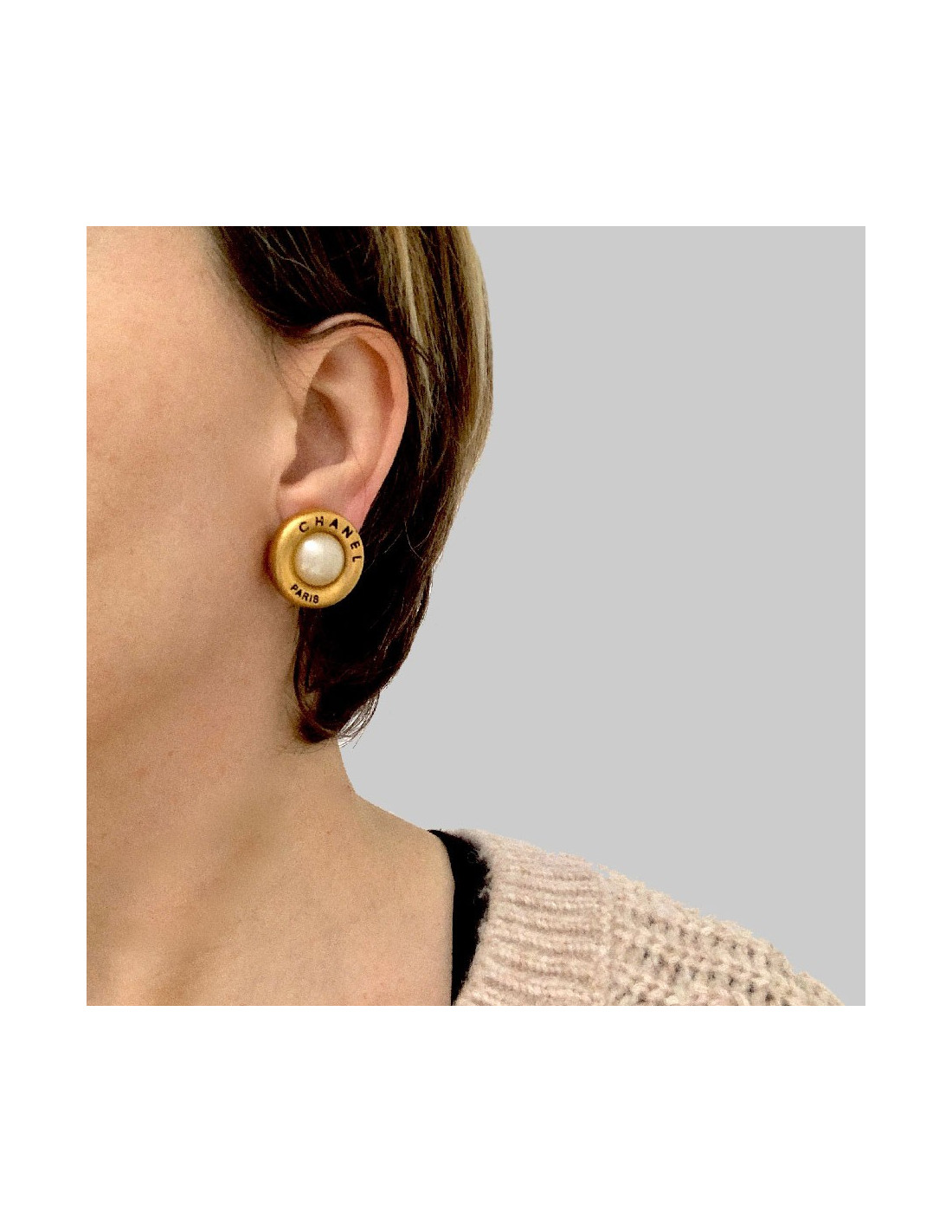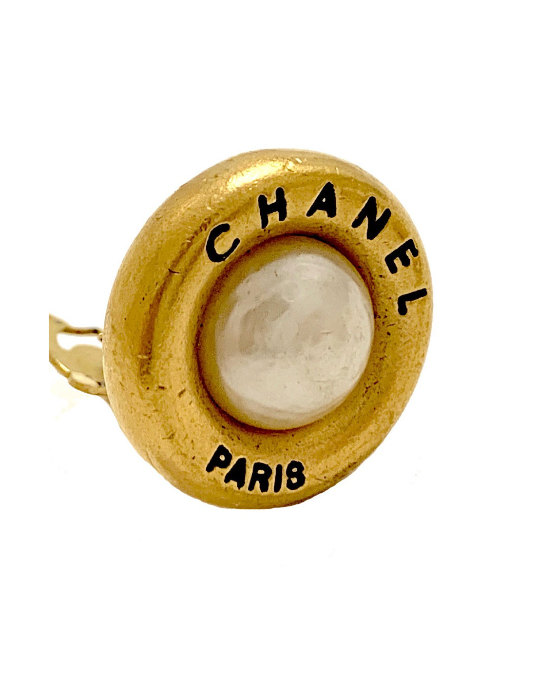 Last items in stock EARRINGS CHANEL vintage clip-on earrings in gilded metal, pearls CHANEL 20938 1,450.00 € Couture! Imposing Chanel round clip-on earrings in gilded metal, mother-of-pearl piece in the center and set with pearls all around. In good condition. Vintage jewel. Dimensions: 4.7 cm in diameter Delivered in a Valois Vintage Paris pouch Add to cart
