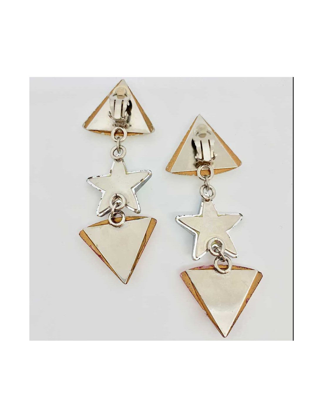 Last items in stock EARRINGS CHANEL vintage square shaped metal and pearl clip-on earrings CHANEL 36075 690.00 € CHANEL vintage square shaped metal and pearl clip-on earrings Condition : very goodMade in FranceMaterials: metal, pearly beadsColors: gold, mother-of-pearlMeasurements : 2.6 x 2.6 cmstamps : yesYear : 1984Details : 4 intertwined CCs with a mother of pearl bead in the center. Add to cart