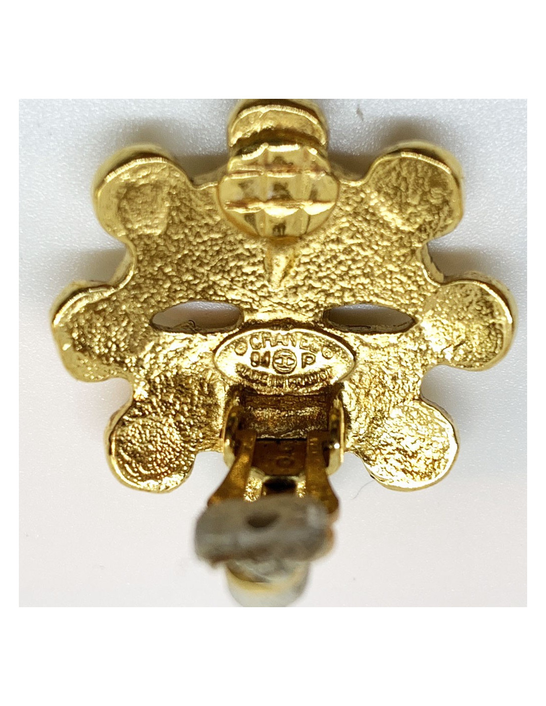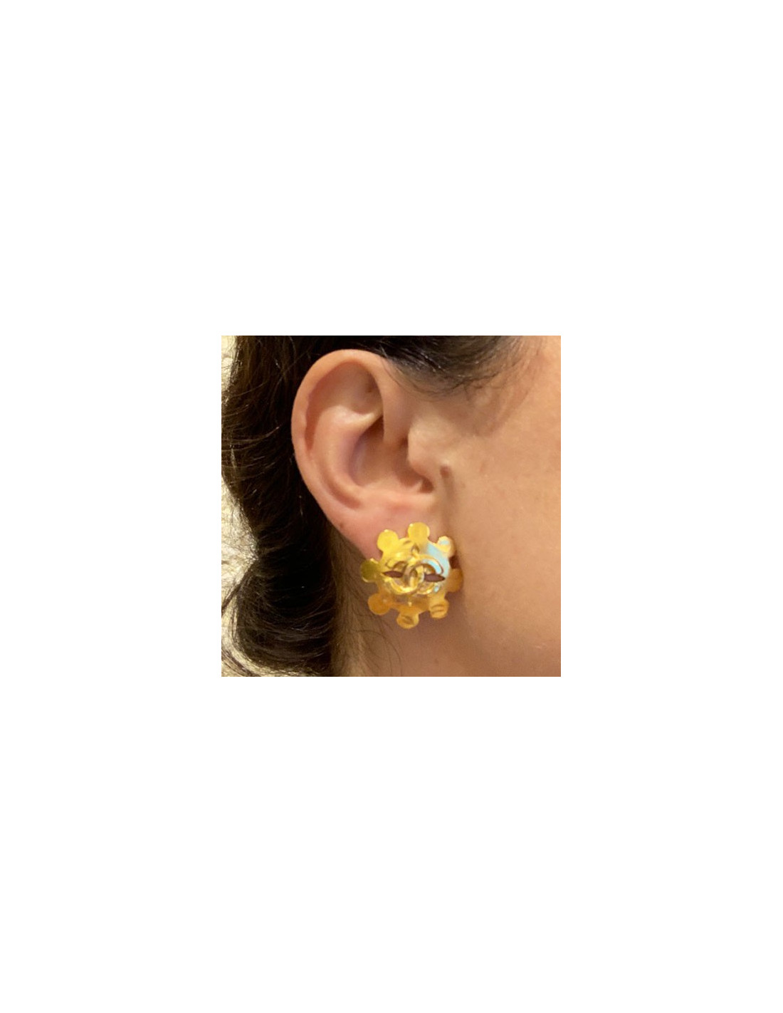 Round shape vintage CHANEL in gilt metal. In the center of each is the CC emblem of the brand.