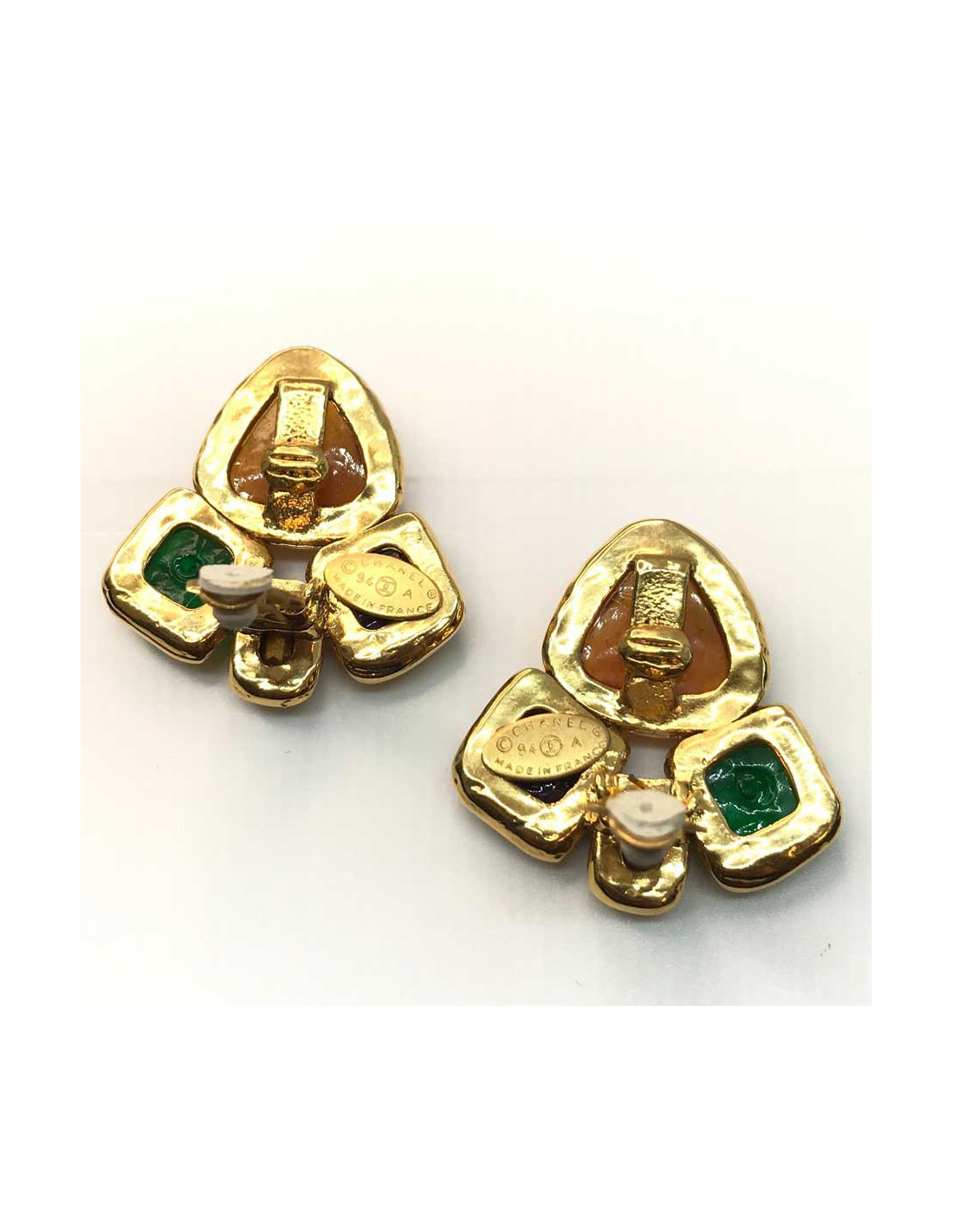 Last items in stock EARRINGS F.VOLLE vintage gilded metal with purple and burgundy resin stones clip-on earrings F.VOLLE 21672 340.00 € F.VOLLE vintage imposing gilded metal clip-on earrings Imposing F.Volle clip earrings in gold-plated metal, faceted stones and resin in burgundy and purple. Vintage jewelry in very good condition. Very light to wear. Dimensions: 11.5x8.5 cm Delivered in a purple pouch. Add to cart