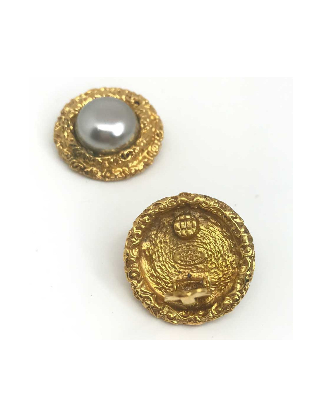Last items in stock EARRINGS CHANEL vintage collector big clip-on earrings CHANEL 36409 6,100.00 € CHANEL vintage collector big clip-on earrings Condition : goodMade in FranceMaterials: pearly beads, metalColors : gold, mothe-of-pearlMeasurements : clip : 2.2 x 2.2 cm CC pendant : 6 x 6 cmTotal length : 10,2cmHardware :gold finish metalStamp : yesYear: 1970'sDetails : Pearly bead clips, one of the beads is slightly damaged which is why we put them in... Add to cart