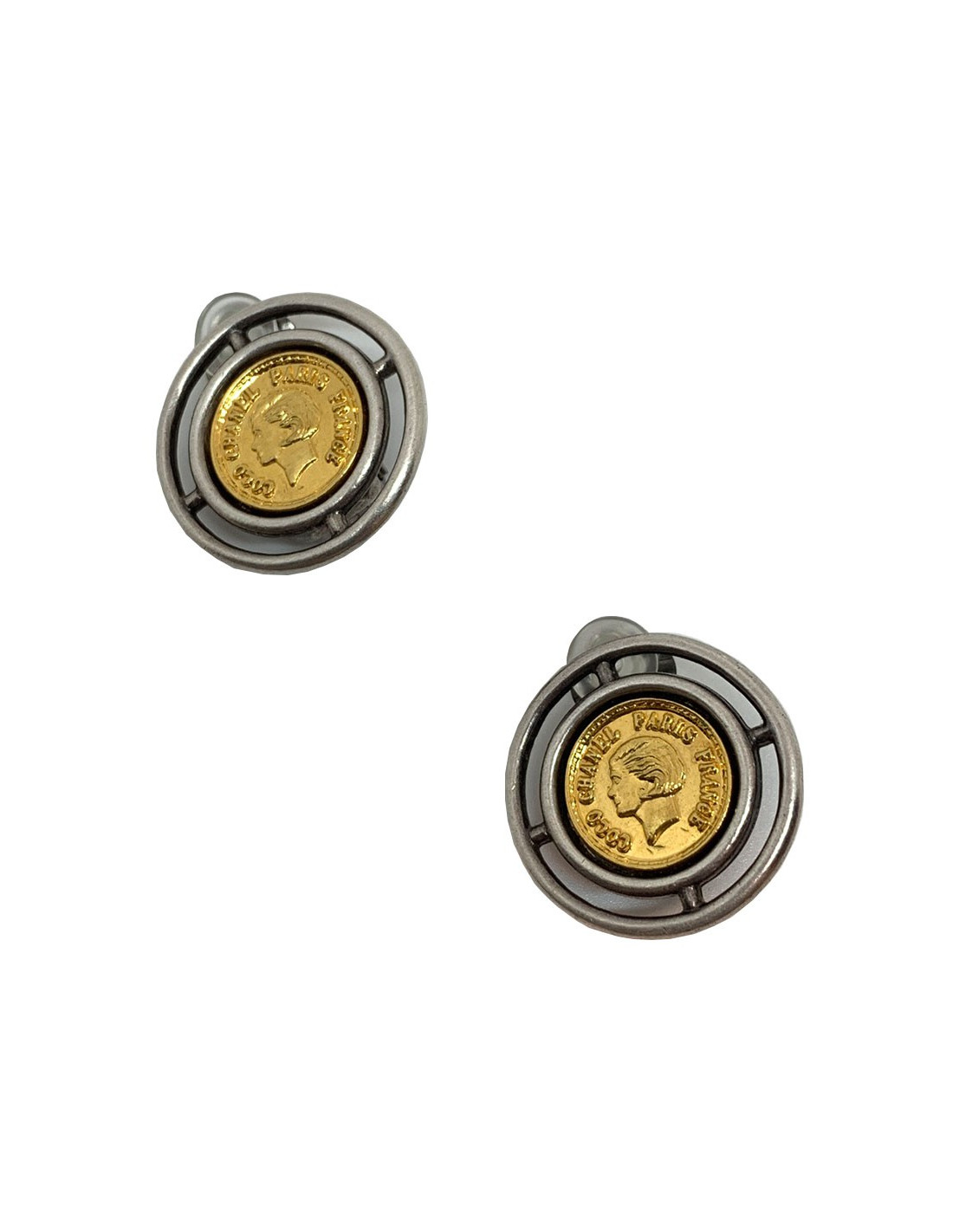 Last items in stock EARRINGS CHANEL Vintage round gilded clip-on earrings CHANEL 31561 1,290.00 € CHANEL Vintage round gilded clip-on earrings Condition: very goodMaterial : metal Color : goldStamp : noYear : 1988-1989Measurements : 3.5 x 3.5 cm Add to cart
