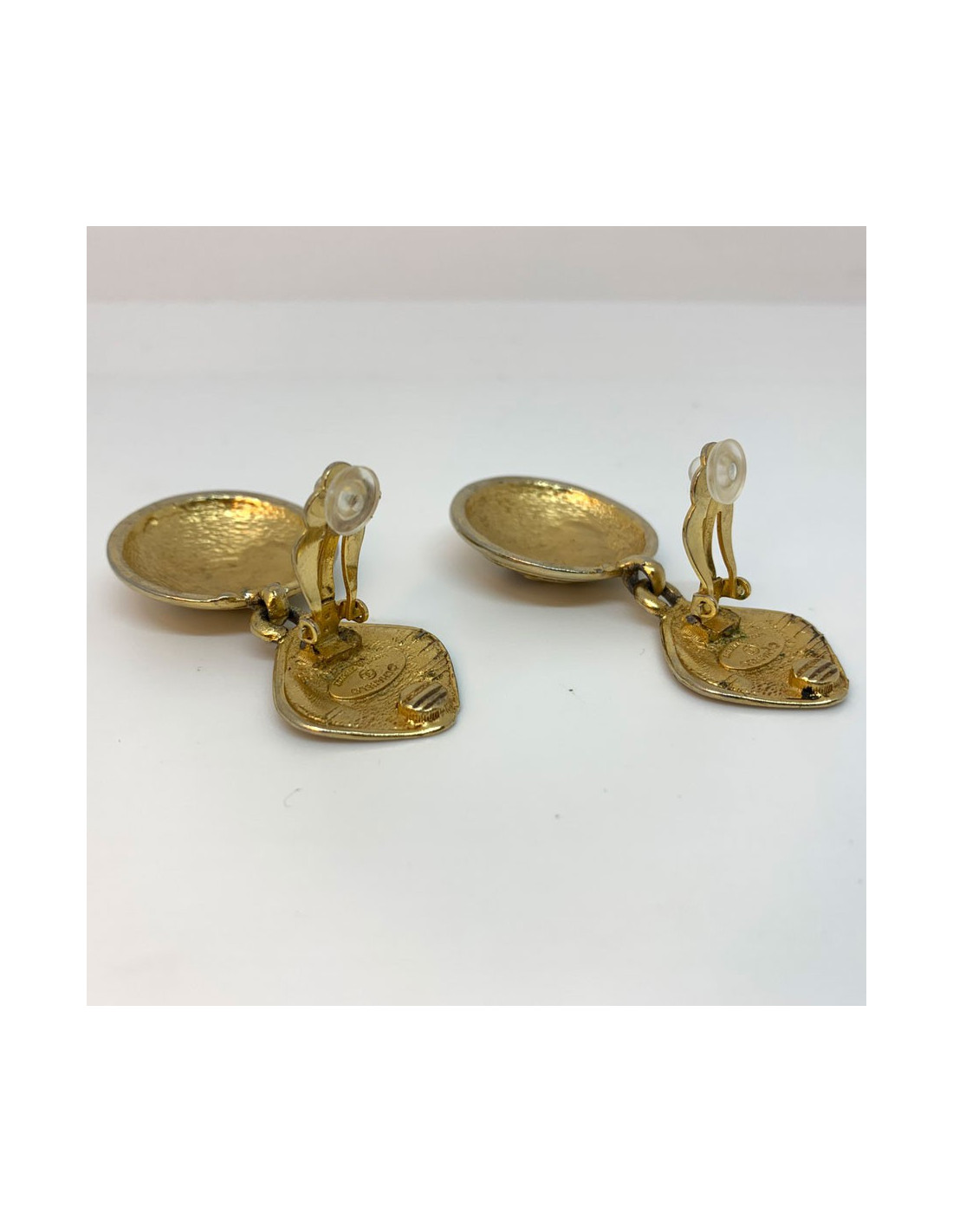 Sold EARRINGS CHANEL vintage Couture round pearl clip-on earrings CHANEL 35532 630.00 € CHANEL vintage Couture round pearl clip-on earrings Condition : goodMade in FranceMaterials: metal, beadsColors : gold, mother-of-pearlMeasurements : 2.8 x 2.8 cmHardware : 24k gold plated metalStamp :yesYear: 1970'sDetails :vintage couture clip-on earrings. A nod to the past, the exterior is engraved with Roman numerals. We place them in “good condition”... View