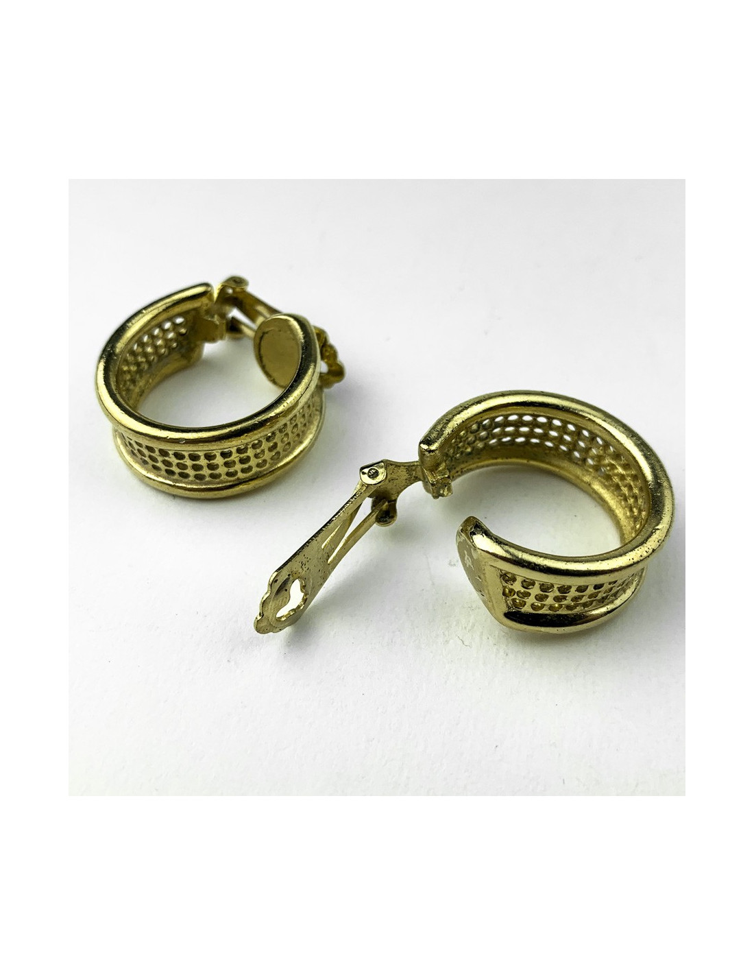Last items in stock EARRINGS CHANEL vintage clip-on earrings in gilded metal, pearls CHANEL 20938 1,450.00 € Couture! Imposing Chanel round clip-on earrings in gilded metal, mother-of-pearl piece in the center and set with pearls all around. In good condition. Vintage jewel. Dimensions: 4.7 cm in diameter Delivered in a Valois Vintage Paris pouch Add to cart