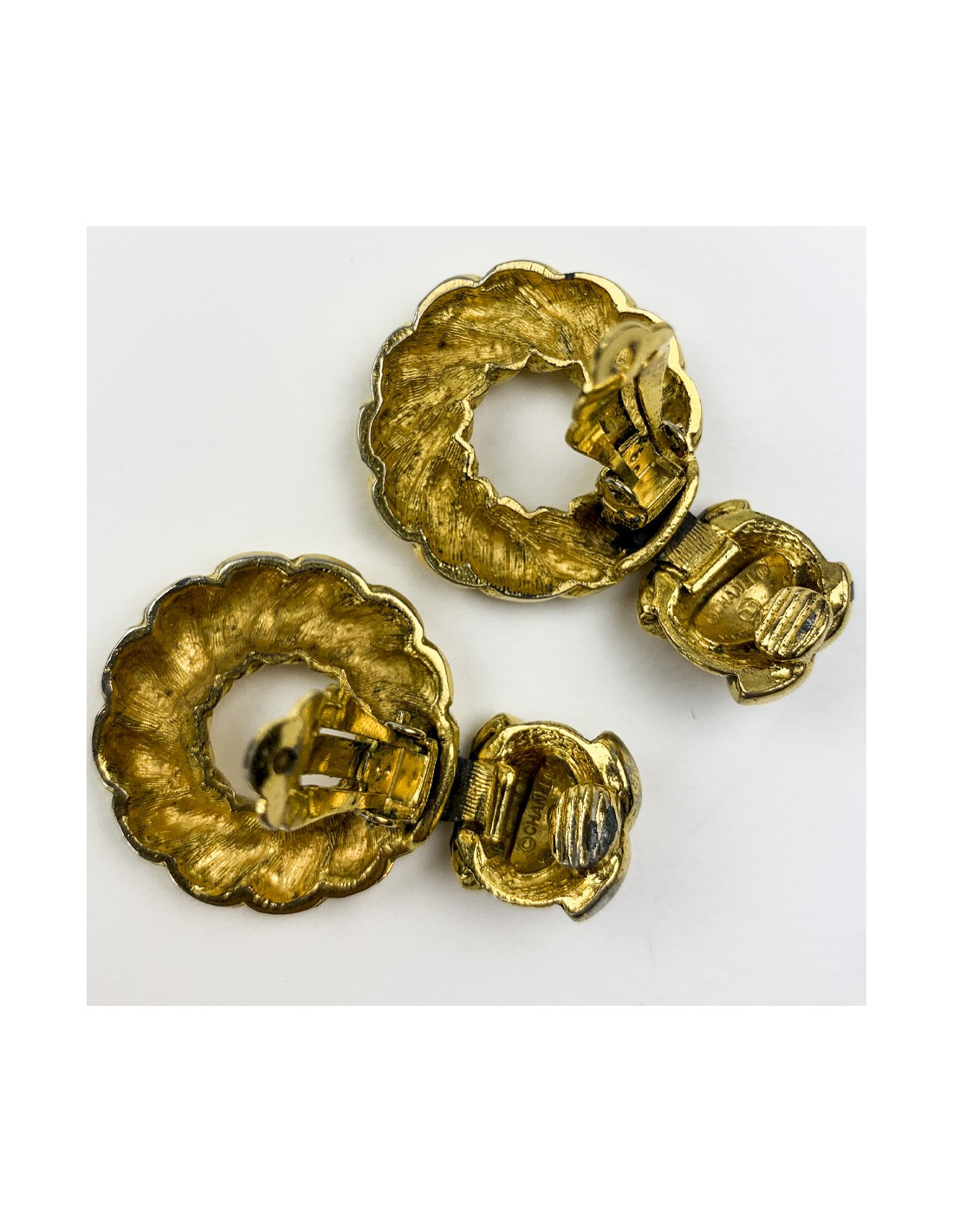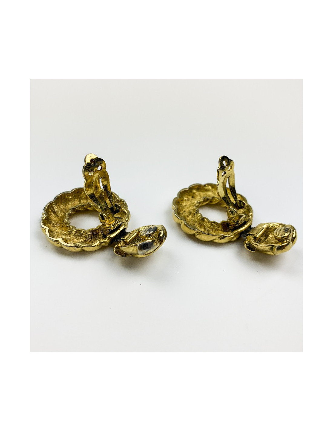 Last items in stock EARRINGS Gilded clip-on earrings AUTRES MARQUES 30670 220.00 € Chiseled gold earrings Condition : very goodColor: goldMaterial : gold plated metalModel : chiselled with tasselsMeasurements : length: 2.3 cm, diameter of the stud 1.2 cm Add to cart