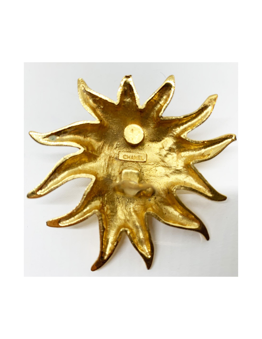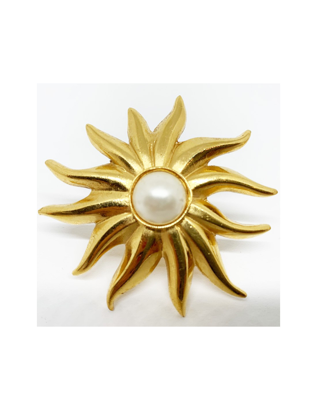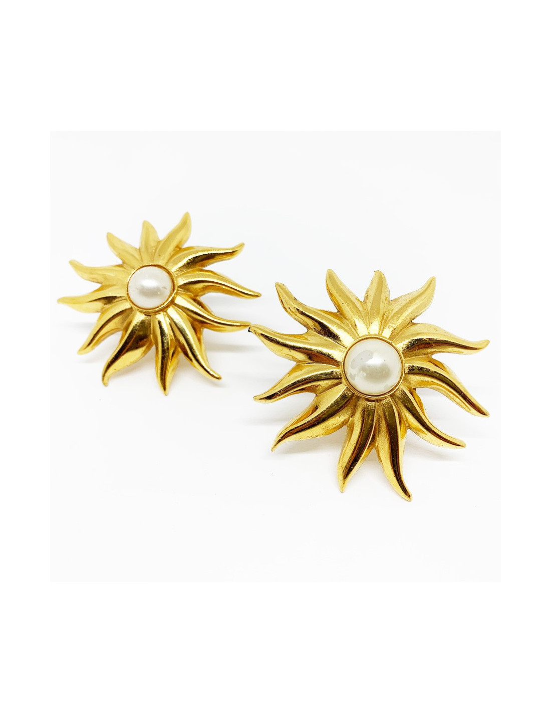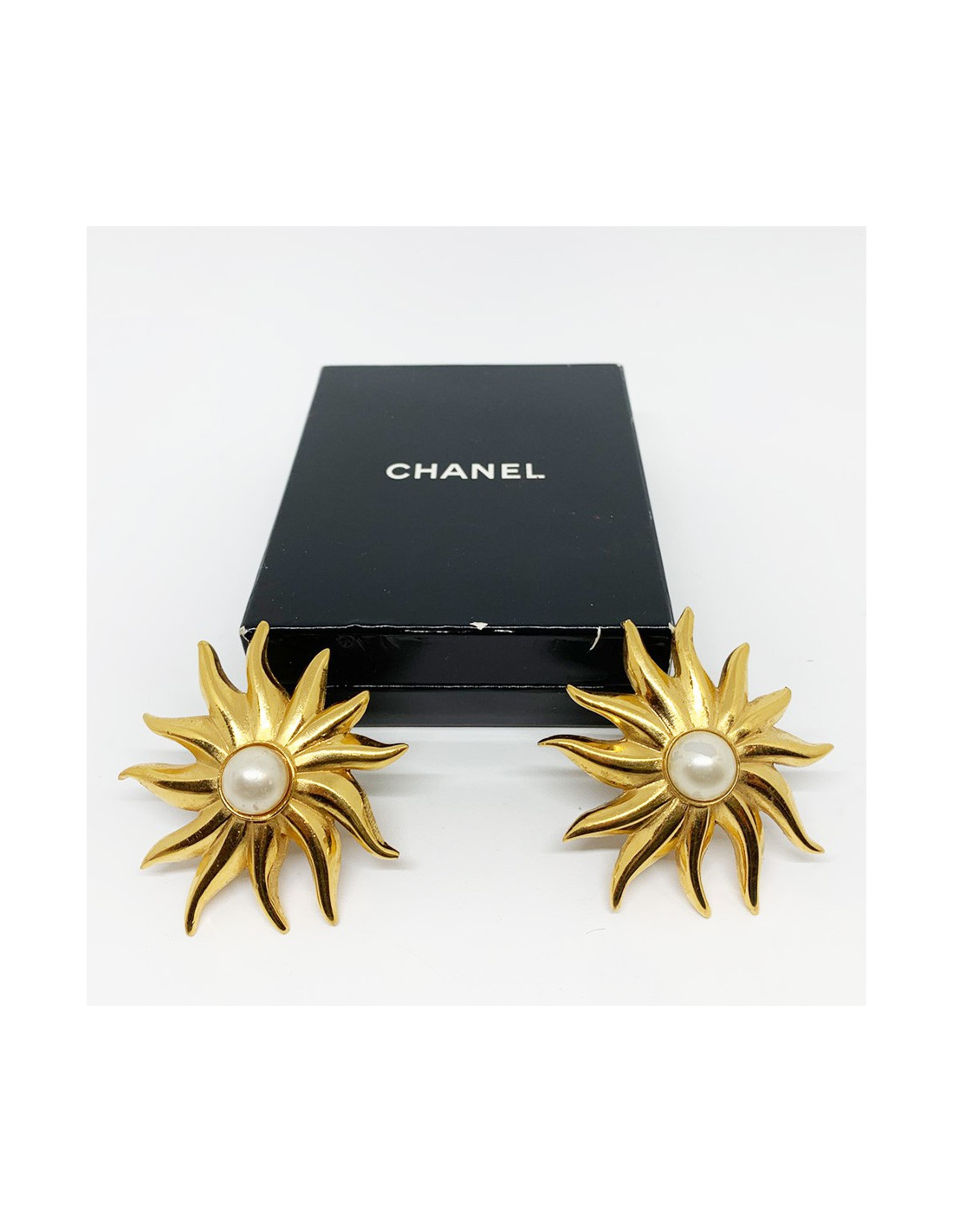 Bring some sunshine into your life with this pair of vintage clip-on earrings by Maison CHANEL. Each depicts a flamboyant sun in fine gold-plated metal, with a pearly pearl at its heart. For a sophisticated, trendy look!