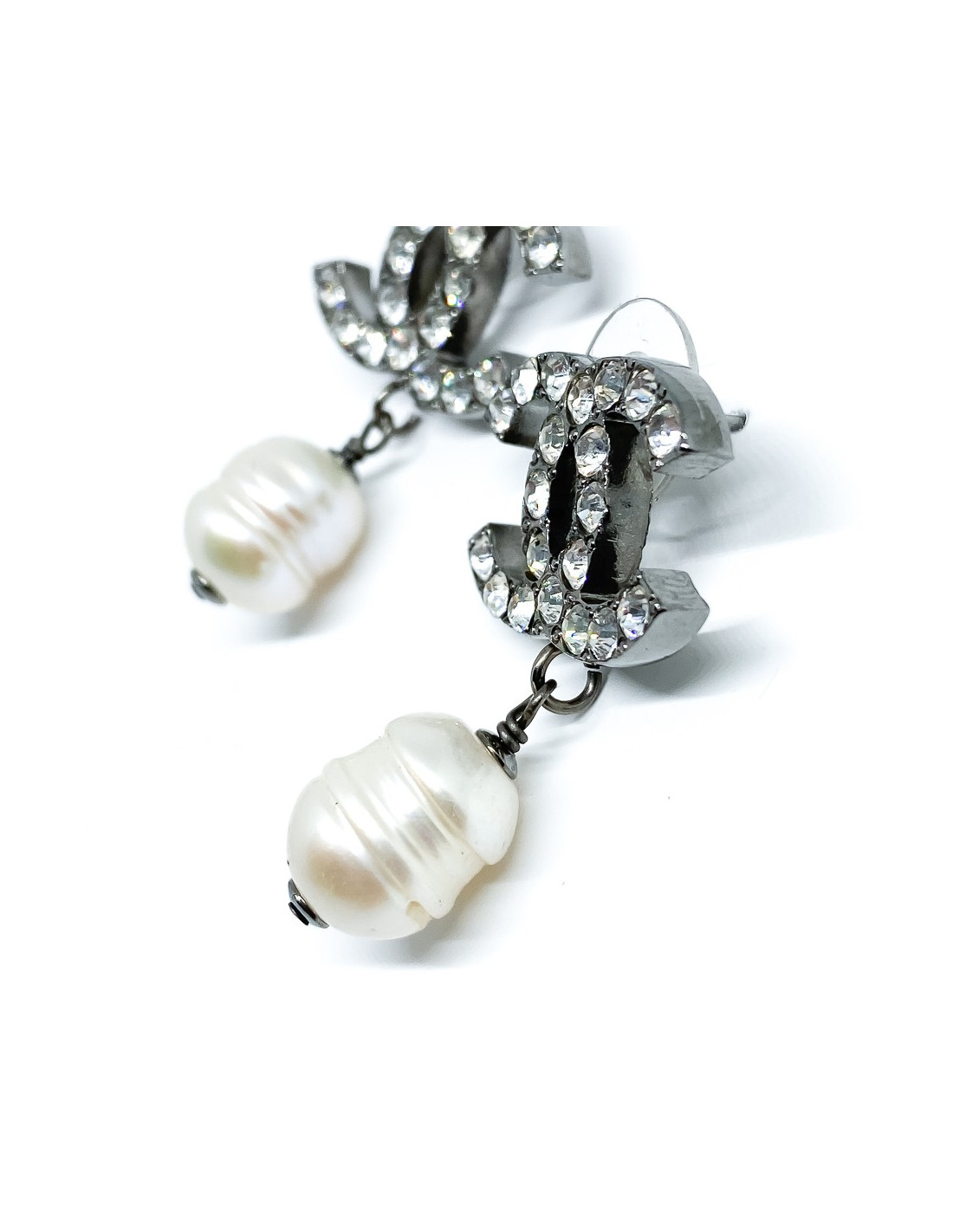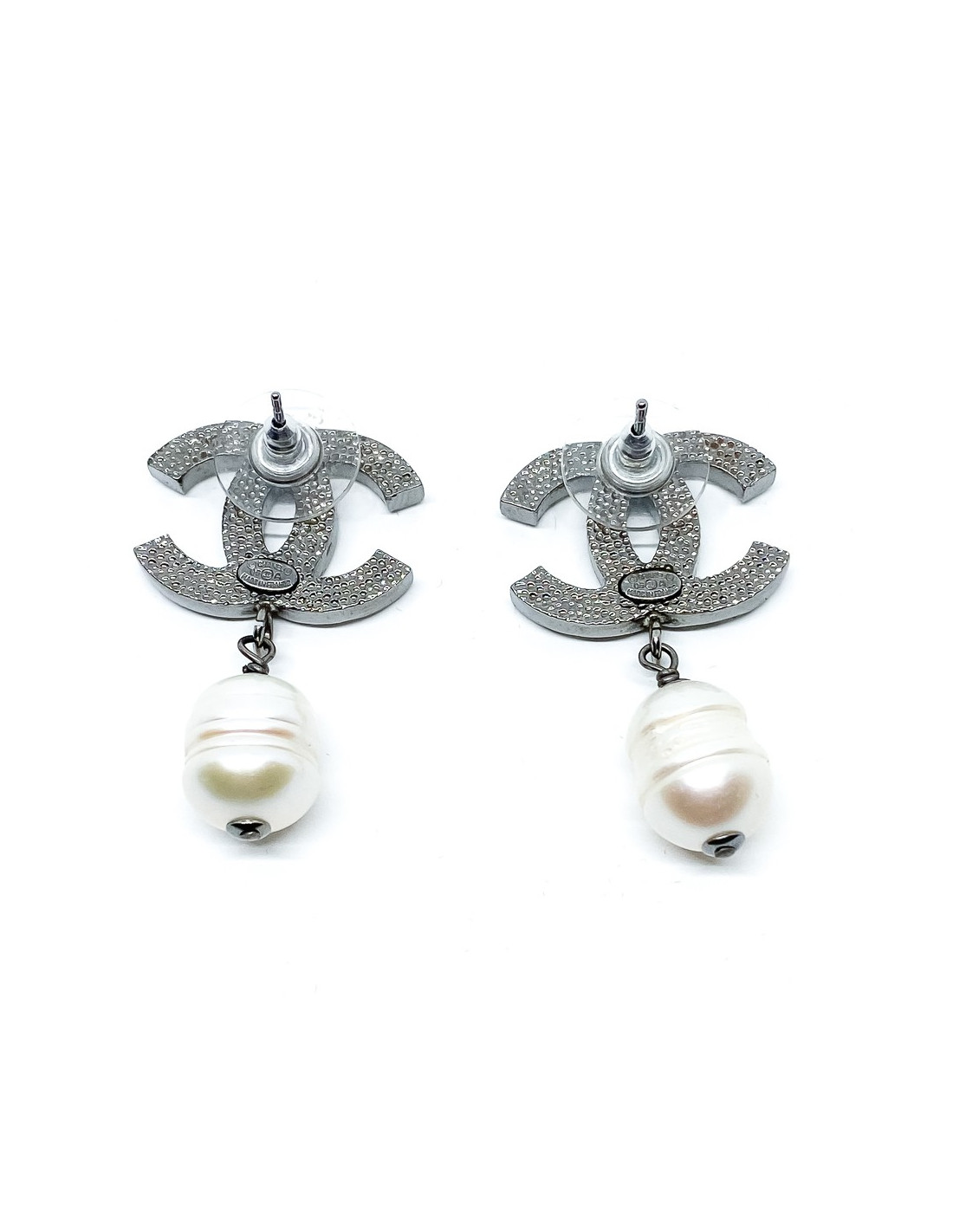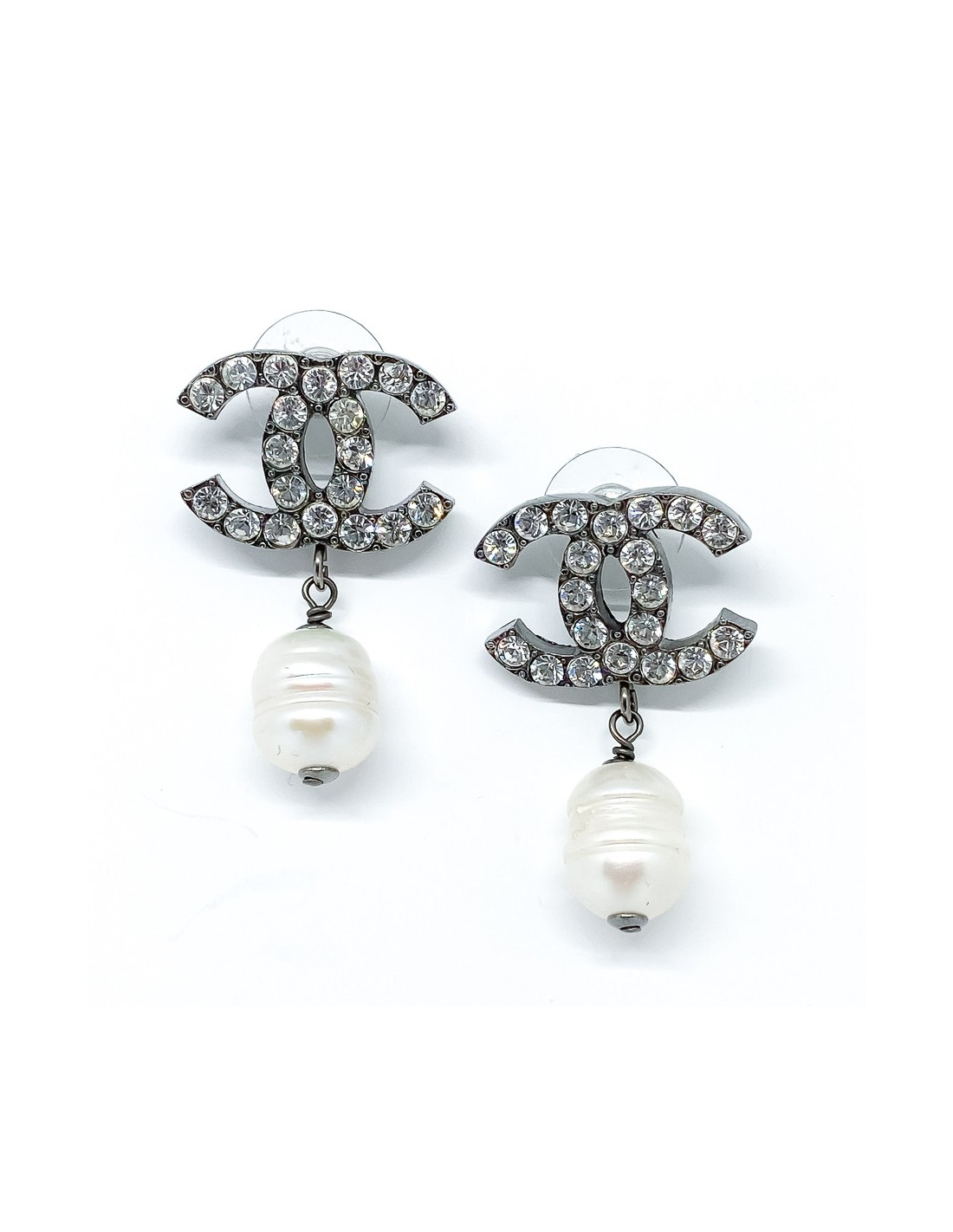Sold EARRINGS CHANEL CC stud earrings with black and silver gray pearls CHANEL 21349 350.00 € Chanel CC stud earrings in silver metal and black and silver gray pearls. New condition. From the Fall / Winter 2014 collection. Dimensions: 3x2.5 cm Delivered in a Valois Vintage Paris pouch View