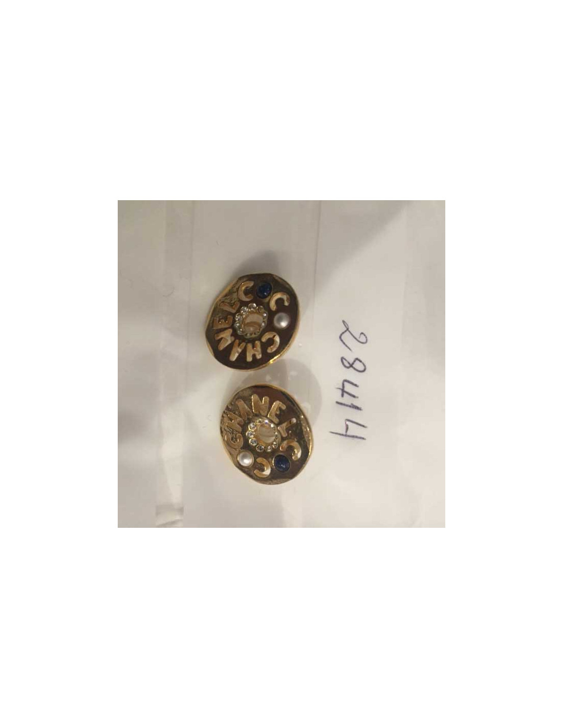 Last items in stock EARRINGS CHANEL vintage circular gilded CC clip-on earrings CHANEL 34200 1,260.00 € CHANEL vintage circular gilded CC clip-on earrings Condition : very goodMade in FranceMaterial : 24k gold plated metalColor : goldMeasurements : diameter 3cmHardware : goldStamp : yesYear: Fall 1994Details : Circular gilded CC earrings. Advantage Valois Vintage Paris : come in their original Chanel box Add to cart