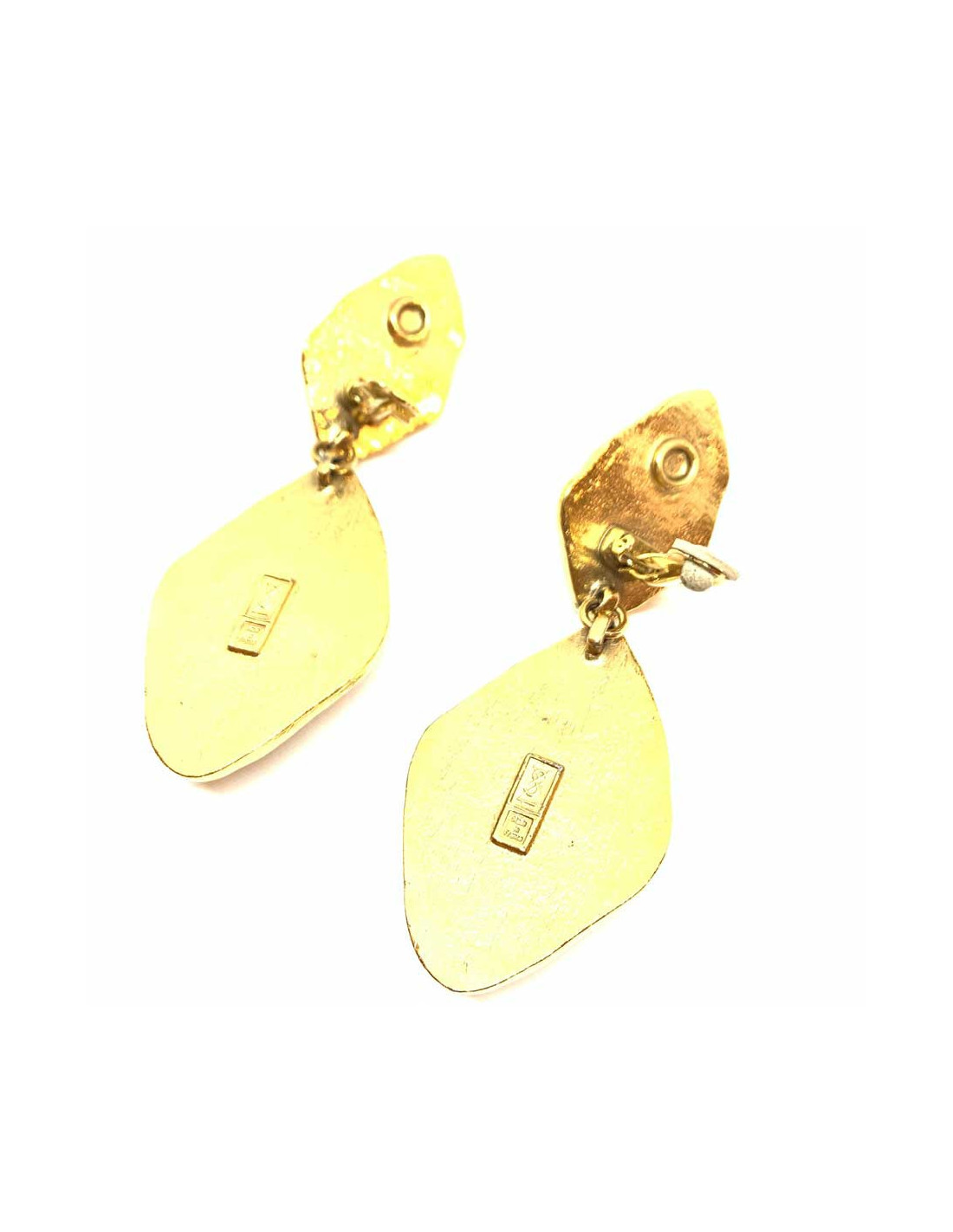 Sold EARRINGS YVES SAINT LAURENT vintage bronze leaf clip-on earrings AUTRES MARQUES 26976 250.00 € YVES SAINT LAURENT bronze and gold leaf clip-on earrings Materials: metal, pearlColors : bronze, gold, mother-of-pearlCondition : goodMeasurements : 9,3x5,5 cm AUTHENTICITY CERTIFIED by our expert team since 1998. View