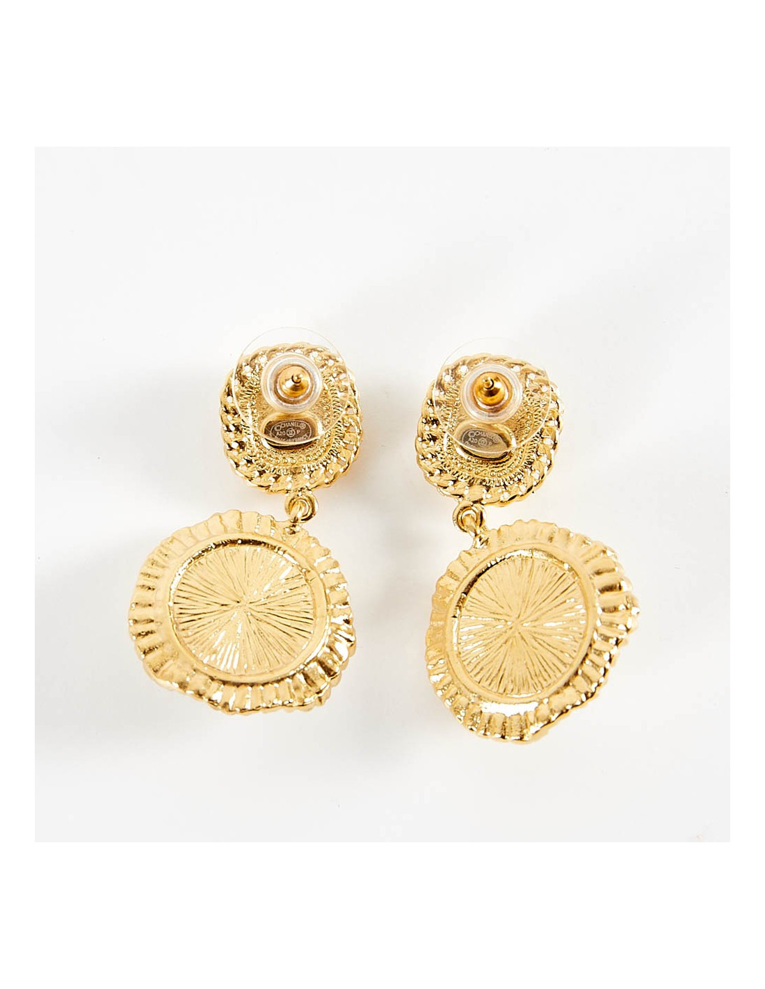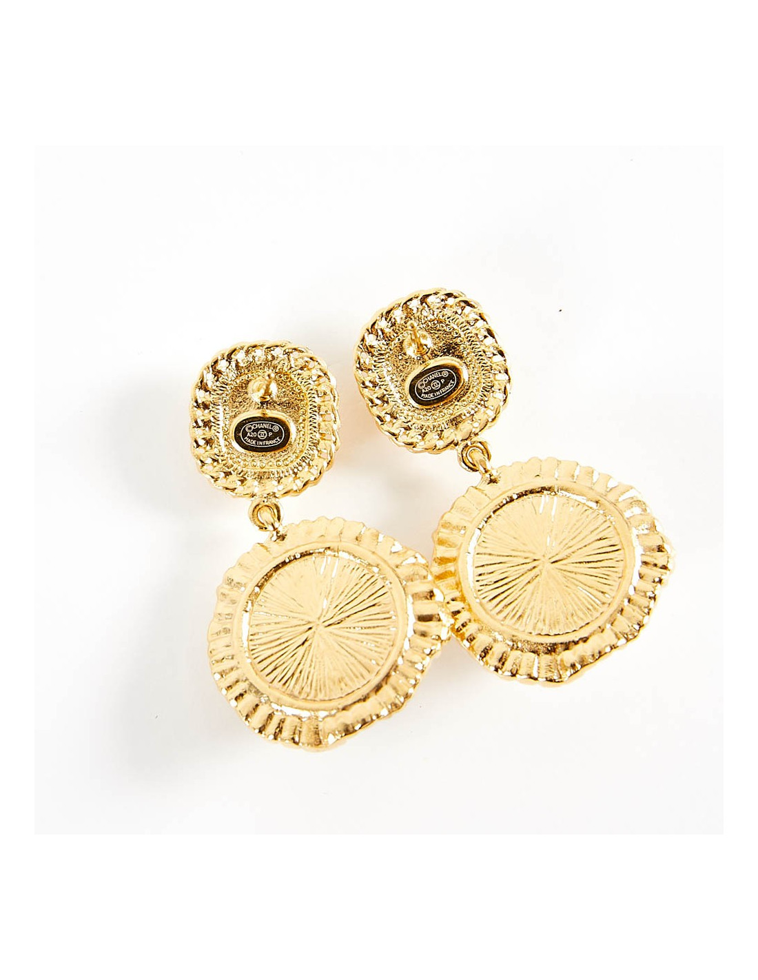 Last items in stock EARRINGS CHANEL vintage brown resin clip-on earrings CHANEL 25448 490.00 € CHANEL vintage couture brown clip-on earrings Condition : very goodMade in FranceMaterials : resin, metalColors : brownModel : clip-on earringsMeasurements : diameter 2 cmHardware : gold plated metalStamp : yesYear : 1986Details : iridescent brown resin cabochon Add to cart