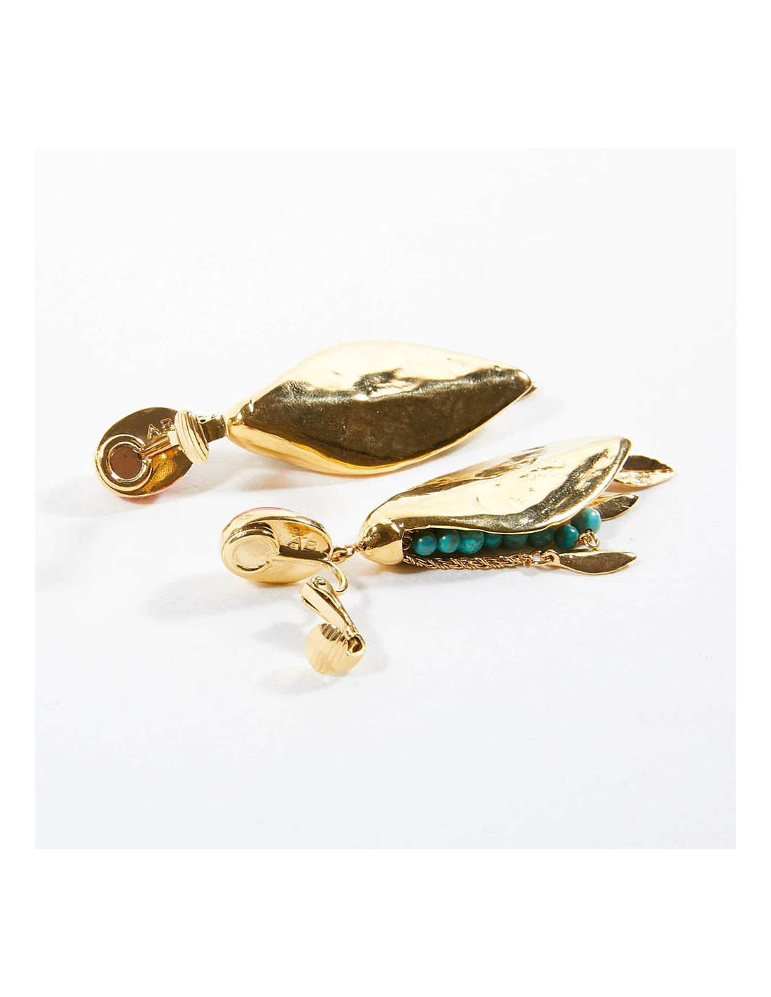Last items in stock EARRINGS CHANEL vintage collector big clip-on earrings CHANEL 36409 6,100.00 € CHANEL vintage collector big clip-on earrings Condition : goodMade in FranceMaterials: pearly beads, metalColors : gold, mothe-of-pearlMeasurements : clip : 2.2 x 2.2 cm CC pendant : 6 x 6 cmTotal length : 10,2cmHardware :gold finish metalStamp : yesYear: 1970'sDetails : Pearly bead clips, one of the beads is slightly damaged which is why we put them in... Add to cart