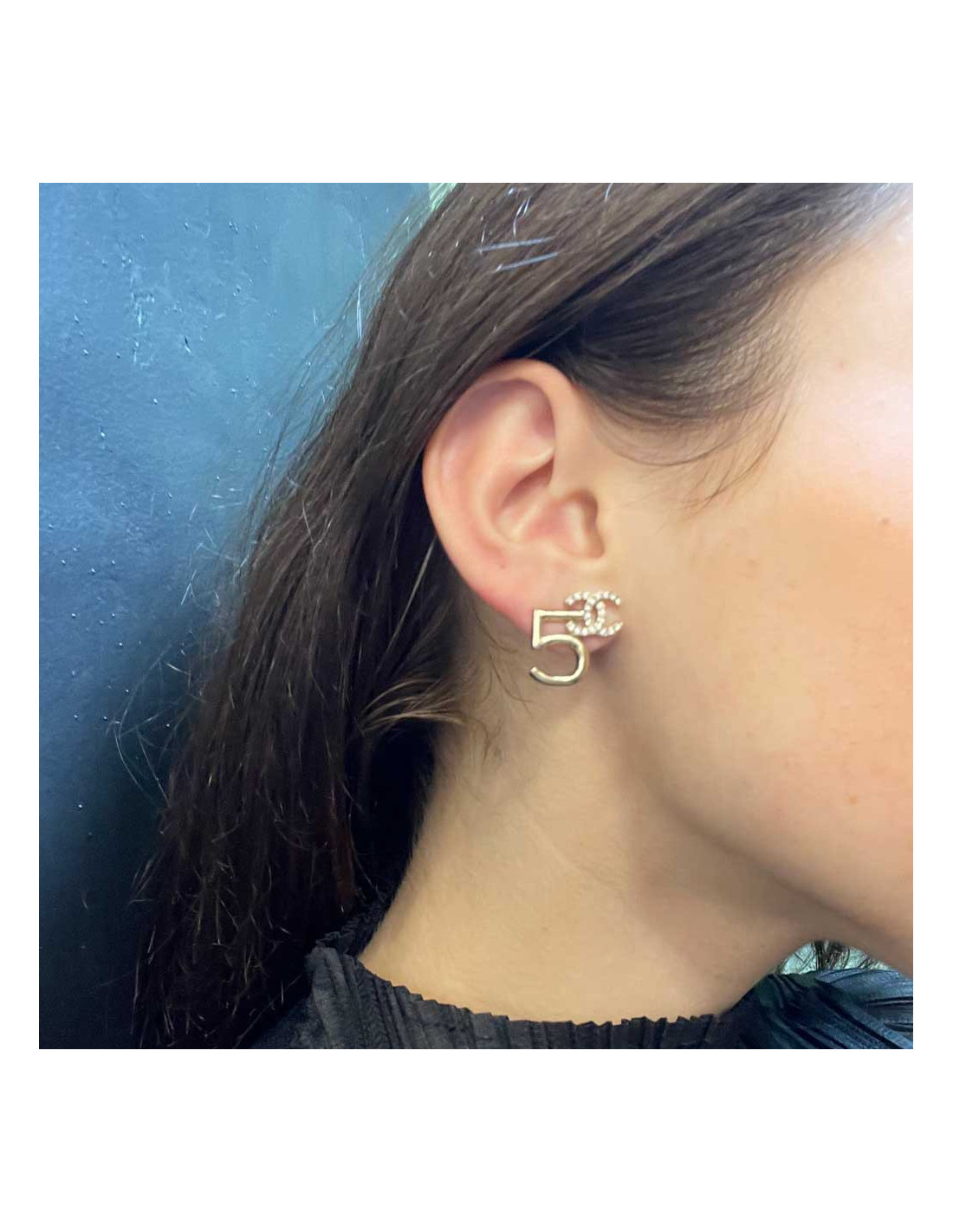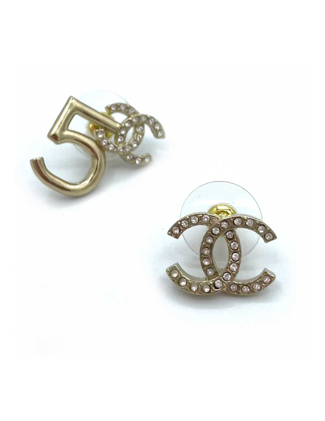 CHANEL 5 and CC Stud Earring in Gilt Metal