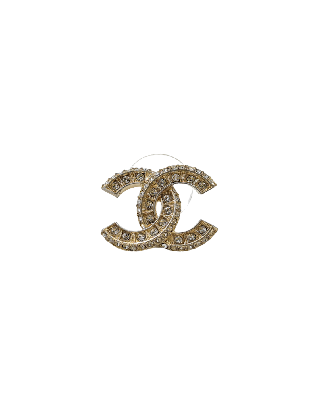 Classic CHANEL CC Stud Earrings In Gilt Metal and Rhinestones