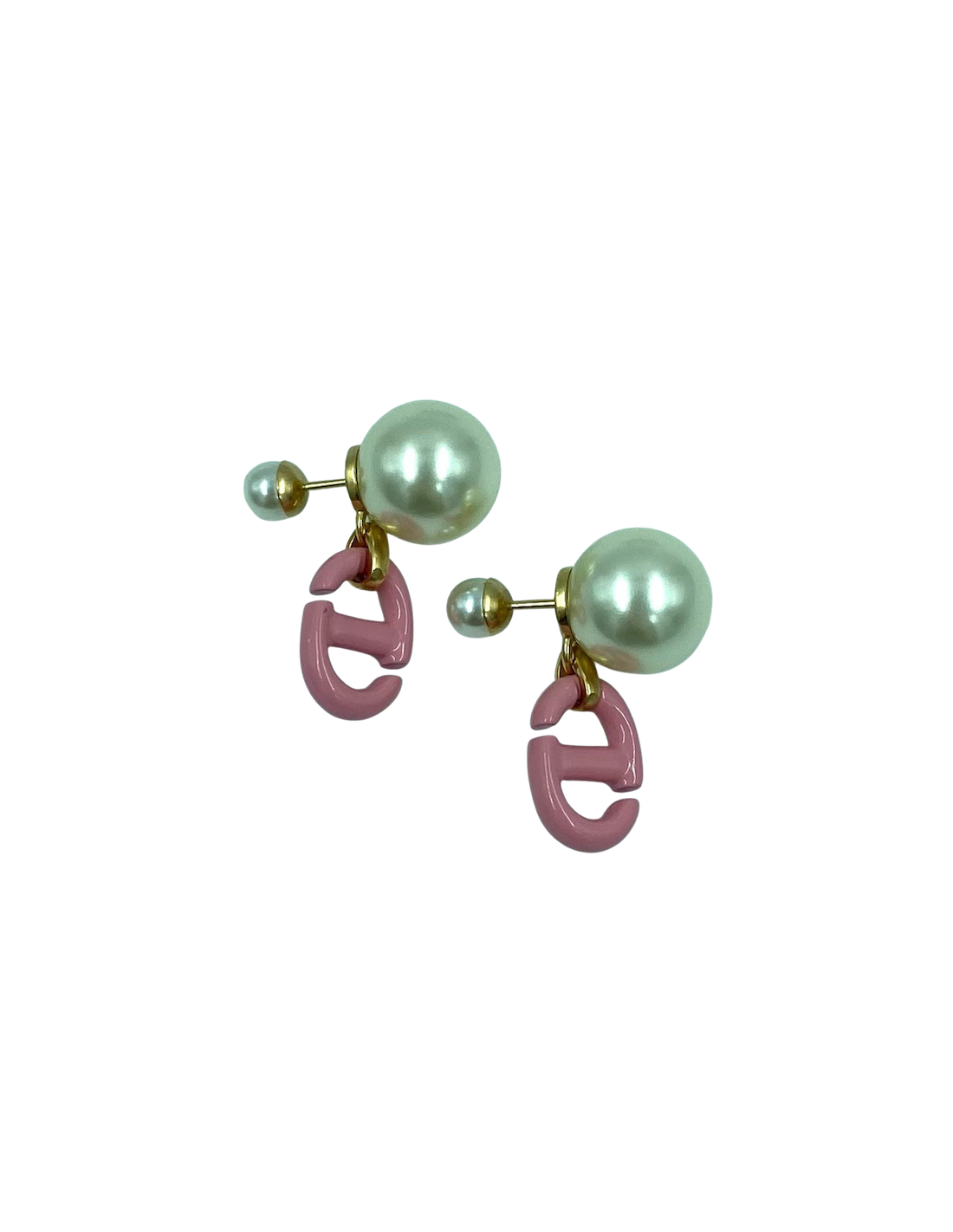 DIOR Tribales Pink Stud Earrings with a Pearl