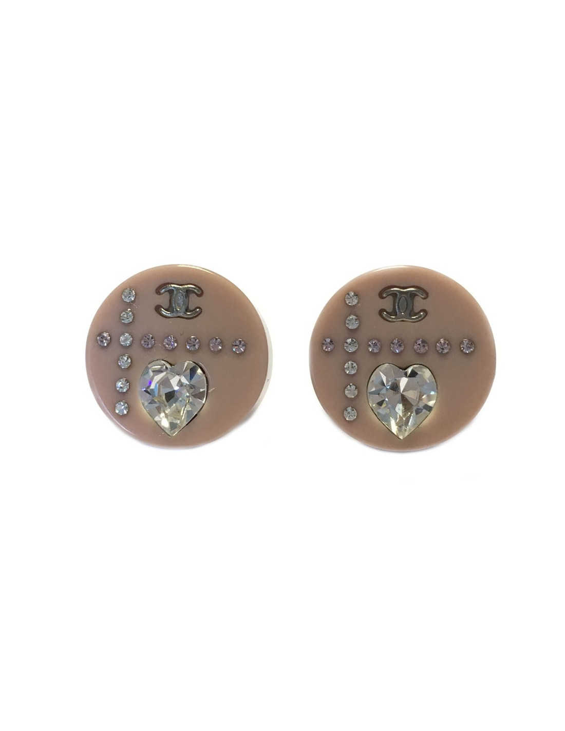 Last items in stock EARRINGS CHANEL vintage circular gilded CC clip-on earrings CHANEL 34200 1,260.00 € CHANEL vintage circular gilded CC clip-on earrings Condition : very goodMade in FranceMaterial : 24k gold plated metalColor : goldMeasurements : diameter 3cmHardware : goldStamp : yesYear: Fall 1994Details : Circular gilded CC earrings. Advantage Valois Vintage Paris : come in their original Chanel box Add to cart