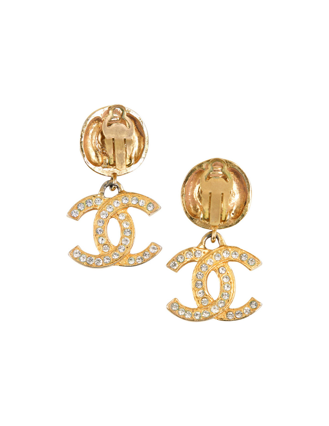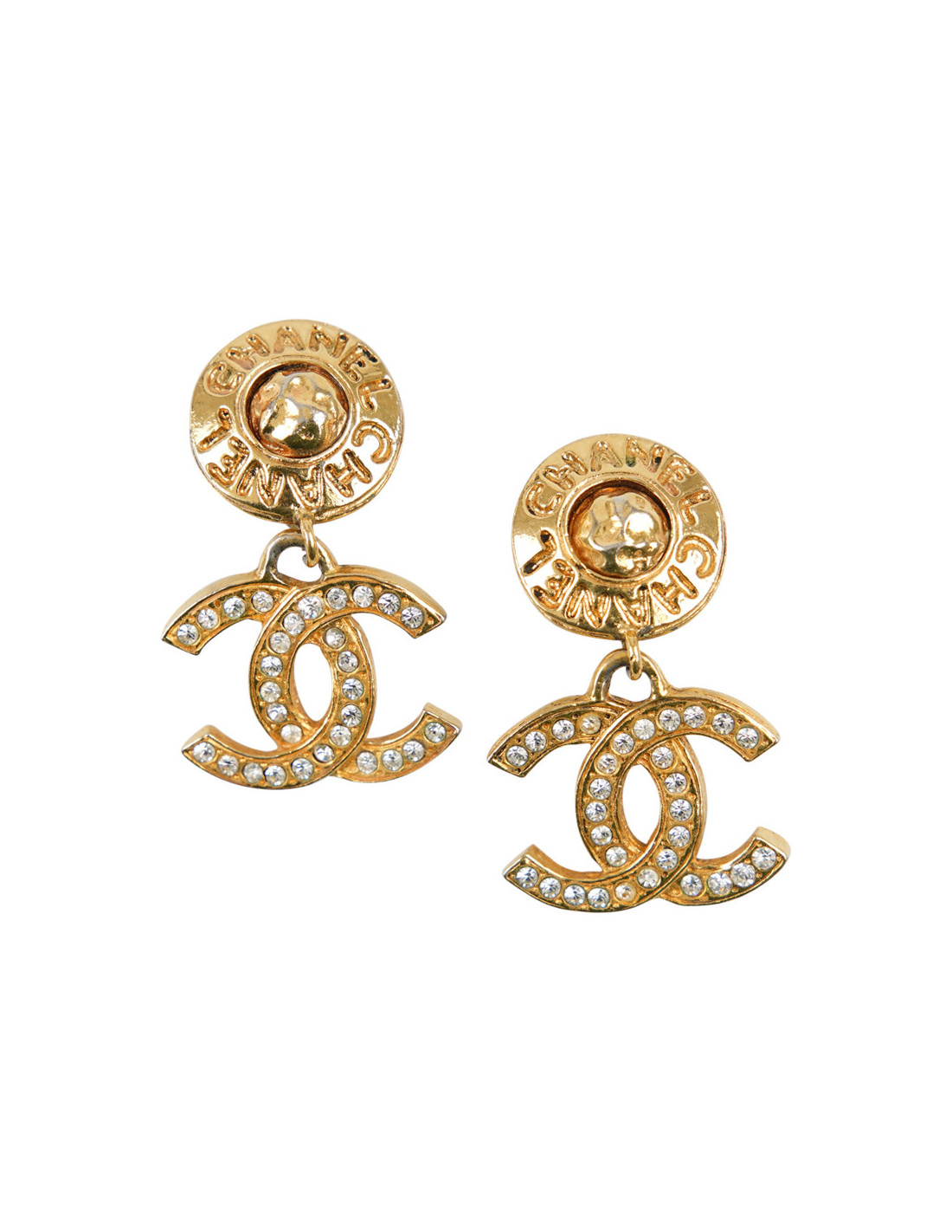 CHANEL Vintage gilded CC pendant clip-on earrings