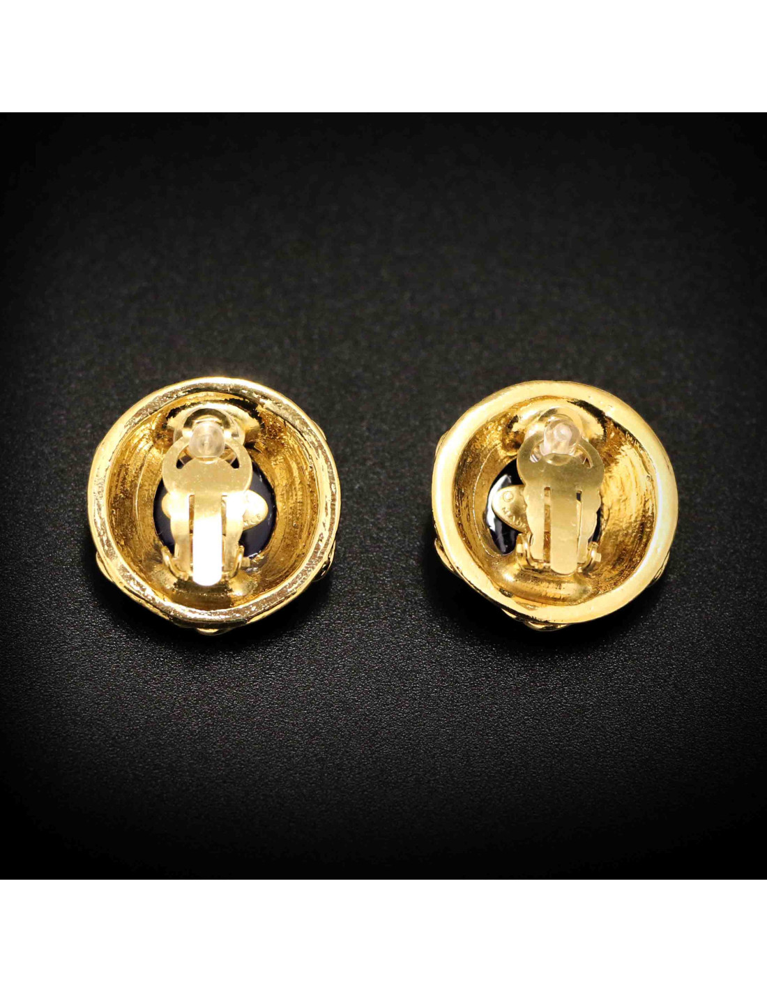 Last items in stock EARRINGS CHANEL vintage clip-on earrings in gilded metal and pearls CHANEL 20372 1,250.00 € Couture! vintage CHANEL clip-on earrings in gilded metal, pearls in the shape of pearly petals and black pearl in the center. Letter S engraved. It comes from press sales. Dimensions: diameter of clip-on earring : 4,5 cm Will be delivered in a Valois Vintage Paris Dustbag Add to cart
