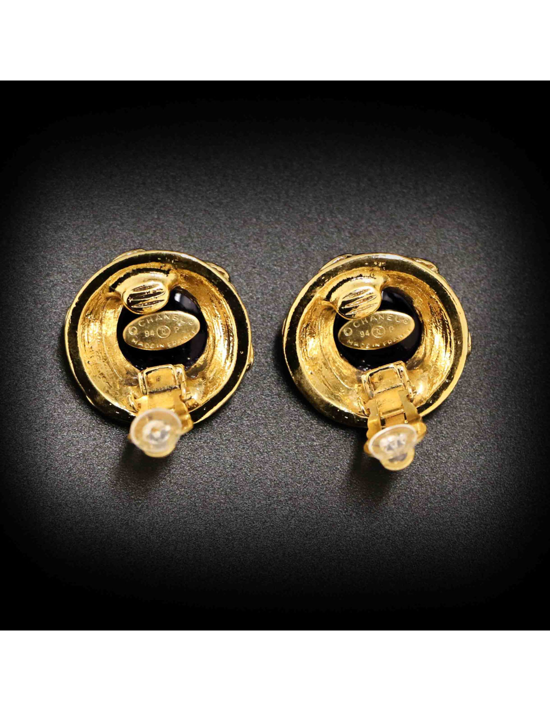 Last items in stock EARRINGS CHANEL vintage circular gilded CC clip-on earrings CHANEL 34200 1,260.00 € CHANEL vintage circular gilded CC clip-on earrings Condition : very goodMade in FranceMaterial : 24k gold plated metalColor : goldMeasurements : diameter 3cmHardware : goldStamp : yesYear: Fall 1994Details : Circular gilded CC earrings. Advantage Valois Vintage Paris : come in their original Chanel box Add to cart