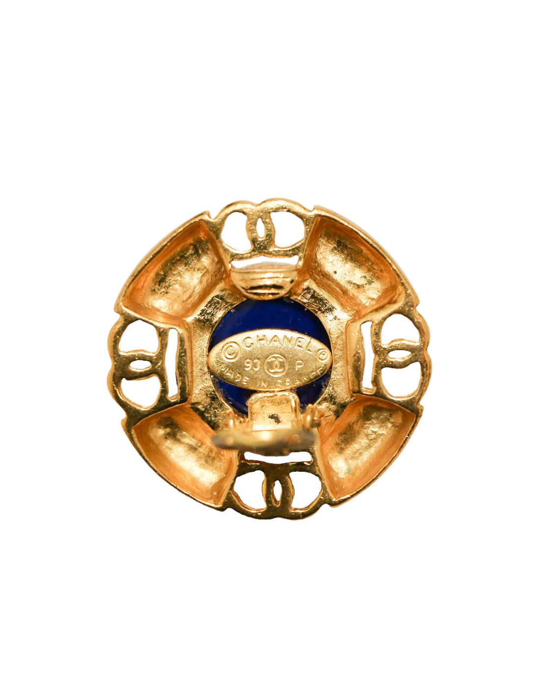 CHANEL vintage sapphire blue molten glass clip-on earrings