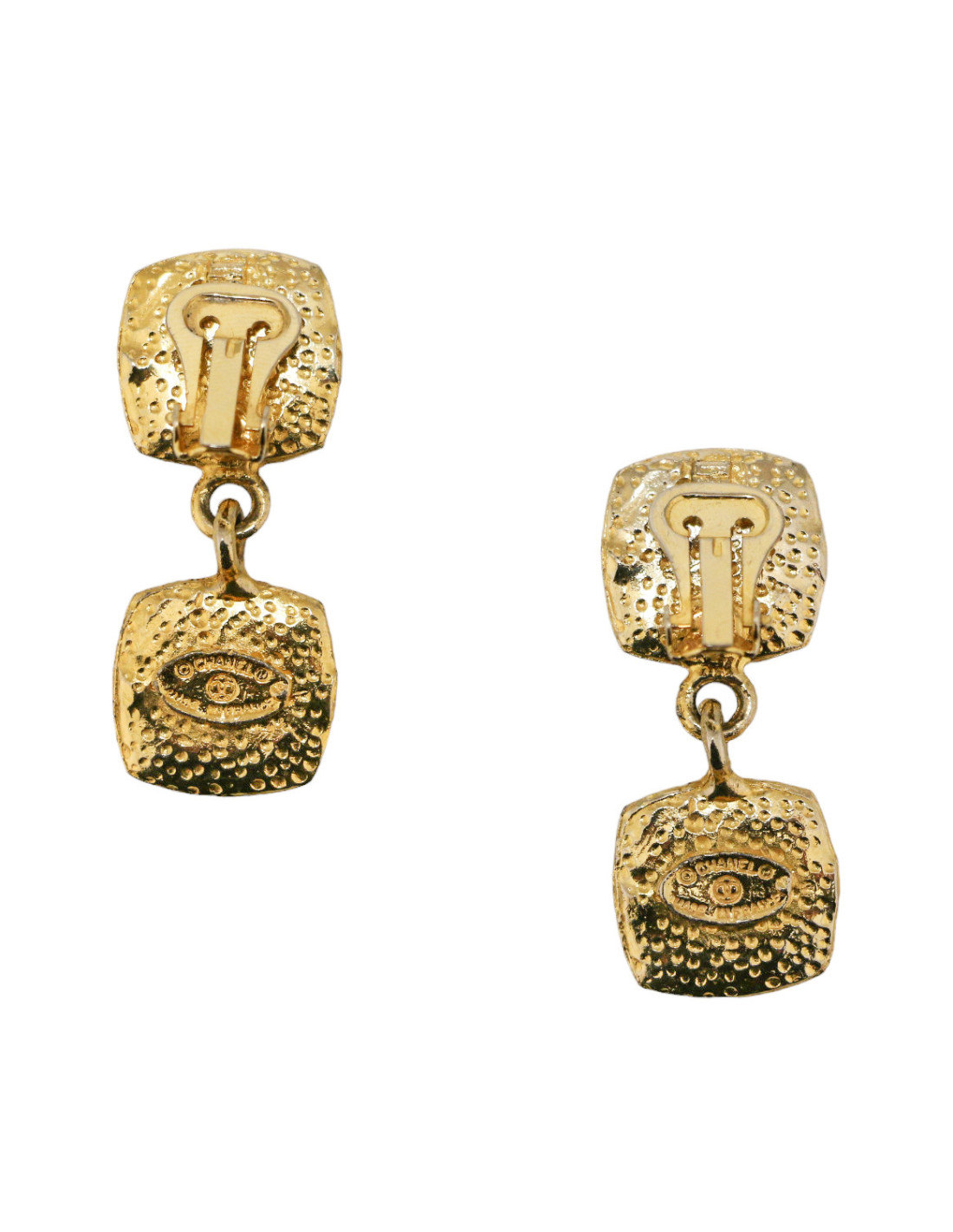 Details : vintage Chanel pendant clip-on earrings. The gilding has faded in places, but it's barely visible, which is why we've placed them in the “good condition” category.